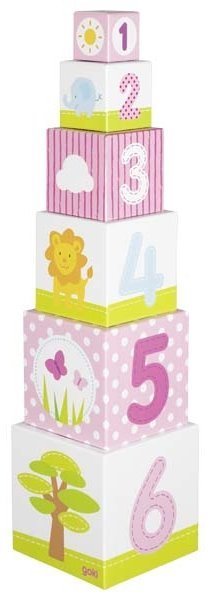 Čeprav je videti zelo nežen, je ta dimnik narejen iz trdnih blokov z zvezdami, živalmi, številkami in rastlinami. Vsebina paketa: 6 trdnih kartonskih kock. Velikost največje kocke 14,3 × 14,3 × 14,3 cm. Skupna višina sestavljene kocke je 57,5 cm. Primerno za otroke od 12. meseca dalje. GOKI je eden najpomembnejših evropskih proizvajalcev igrač visoke pedagoške in didaktične kakovosti. Podjetje poudarja varnost igrač, njihovo zdravstveno neoporečnost in skrb za obnovljive vire. Les se pridobiva tam, kjer lahko raste. Uporabljajo se naslednje vrste lesa: javor, bukev, oreh, lipa, jesen, bor, breza in kavčukovec. Barve in laki so nabavljeni pri manjših proizvajalcih.