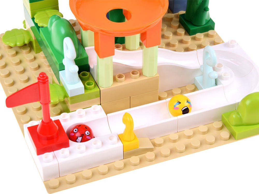 Učinkoviti igralni bloki za otroke bodo omogočili, da sami zgradijo čudovit vrt s toboganom. Nabor je sestavljen iz 69 elementovów. Kocke različnih oblik, barv in tekstur bodo poskrbele za odlično zabavo. Barve kompleta so zelena, bež z rdečimi, oranžnimi in belimi dodatki.
