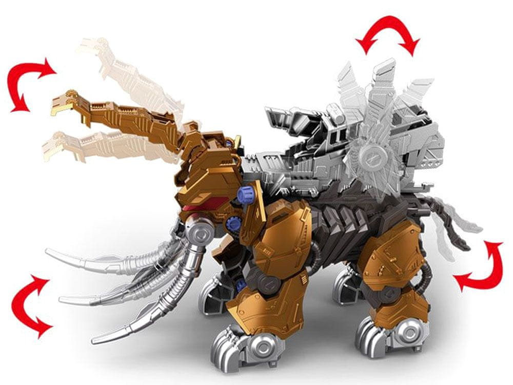 S sestavljanjem modela se zabava ne konča, vendar je v kompletu vključen mehanizem za premikanje mamuta (zahteva namestitev 1 x AAA baterije, ni priložena).