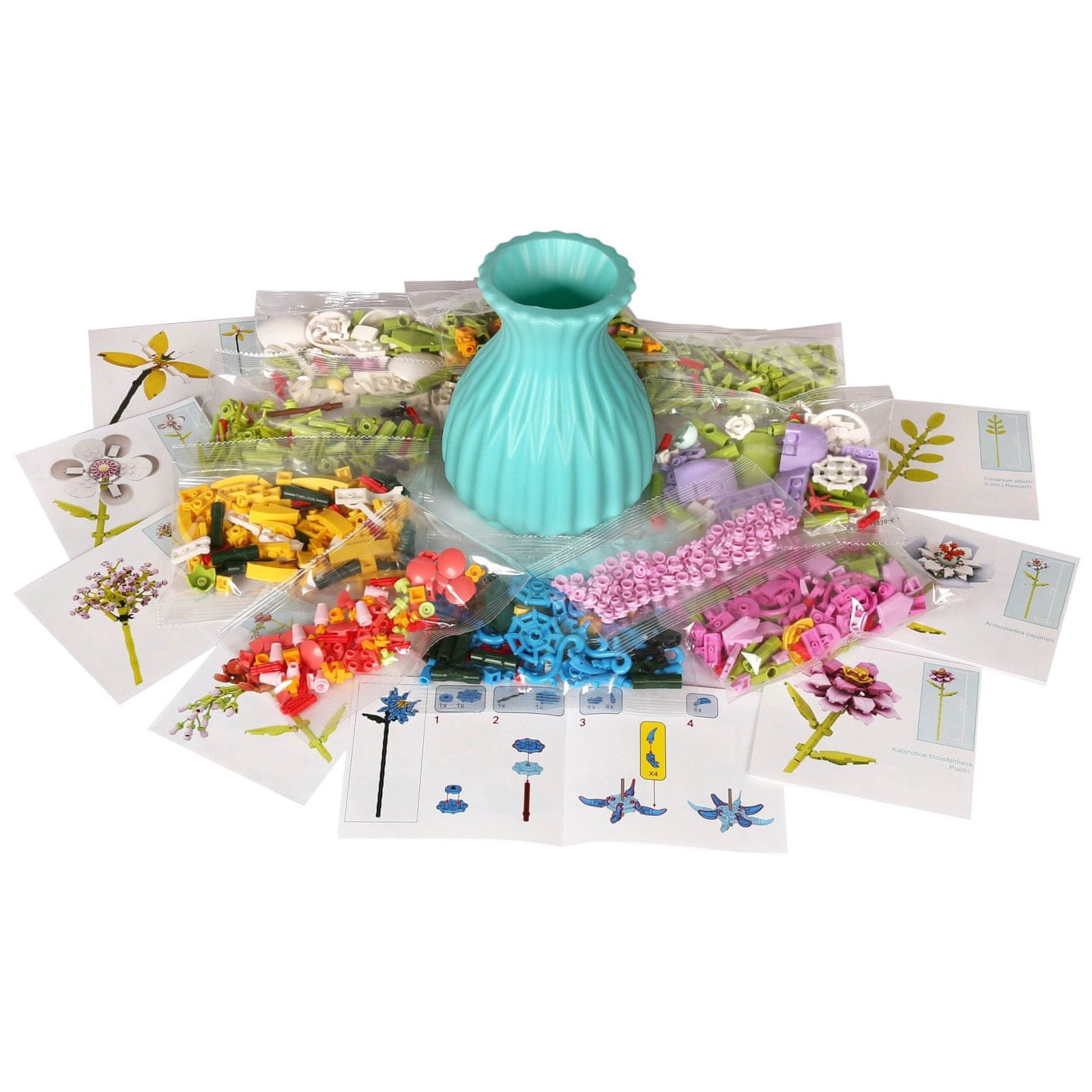 Mega Creative Šopek gradnikov, ZDRUŽLJIV Z LEGO, 8 CVETOV v vazi, KOMPLET ZA SAMOSTOJNO IZDELAVO, 778 kosov 6+