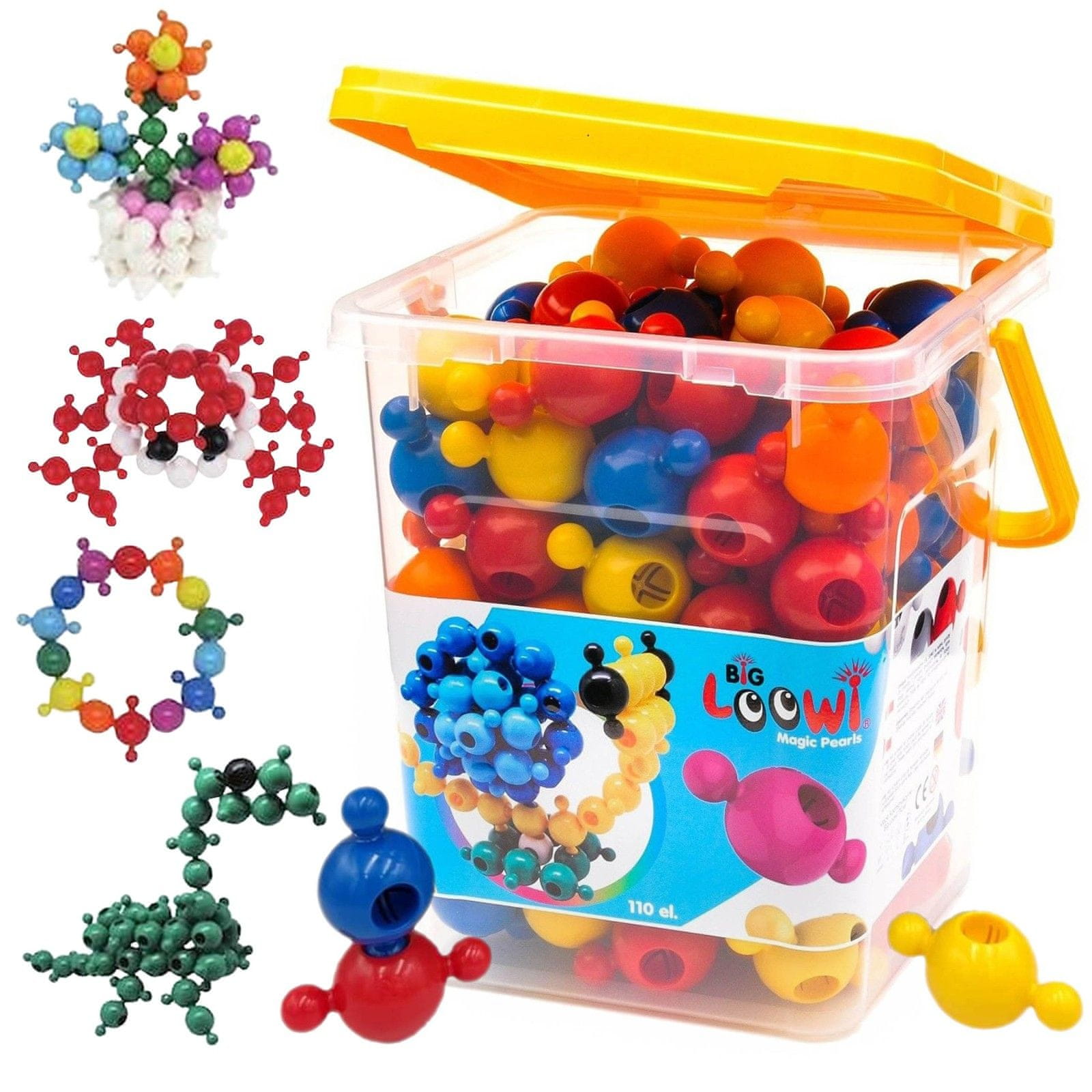 sarcia.eu VELIKI KOMPLET gradbenih kock za otroke v vedru, 110 KOSOV, LOOWI 3+