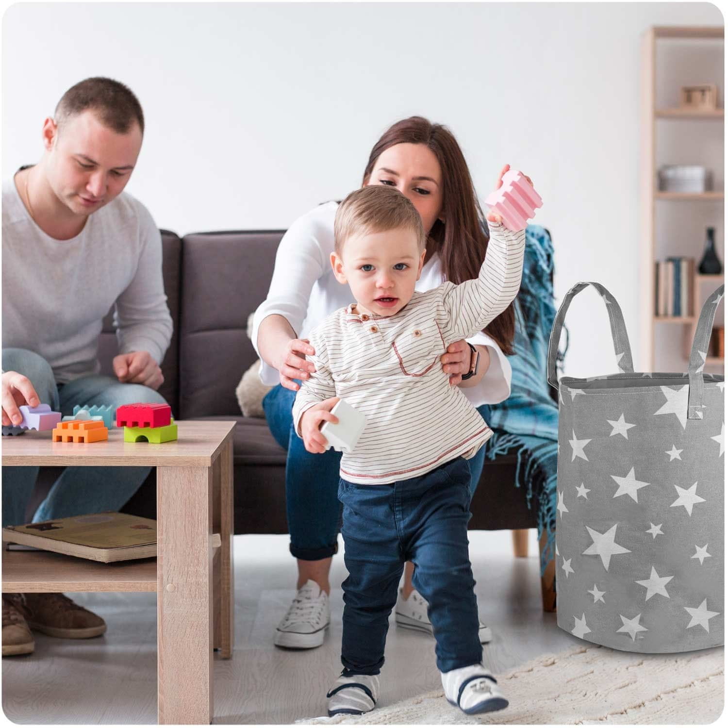 Košara za igrače Nukido – siva z zvezdicami Celoten opis