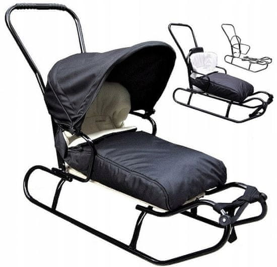 Sani, ki jih ponujamo, so 100 % izdelane v poljskih tovarnah iz debelih jeklenih cevi!!! Nosilnost naših sani je do 100 kg. Najkakovostnejše kovinske in lesene sani so trenutno na voljo v naslednjih barvah: 5-v-1 sani temno modre barve (sani, spalna vreča, streho, potiskalo, naslonjalo), dodatno opremljene z enostavno snemljivim naslonjalom in potiskalom. Velika prednost naše ponudbe je, da so sani opremljene z nastavljivo streho iz neprepustnega materiala, ki jo je mogoče sestaviti in razstaviti brez uporabe orodja!!! ODLIČNA PONUDBA SANI ZA ZIMO, SPALNO VREČO pa lahko uporabljamo celo leto za AVTOSEDEŽE IN VOZIČKE TER KOT VREČO ZA ZAMENJAVO!!!! PROSIMO, UPOŠTEVAJTE!!! SANI, KI JIH PONUJAMO, IMAJO ZA ZARADI NAŠE KONKURENCE OJAČAN, VISOK IN VAREN NASLONJALO (BREZ ŠTRLEČIH OSTRIH ELEMENTOV, KI SO POGOSTO PRISOTNI V DRUGIH PONUDBAH)!!! SANI IMAJO ŠIROKO NAMEŠČENE SANKE, ZARADI ČESA SO ZELO STABILNE IN SE TEŽKO PREVRNEJO. NOSILNOST NAŠIH SANI JE DO 100 KG. Bogata oprema vključuje: – ODSTRANLJIVO STREŠNICO – ODSTRANLJIVO POTISKALNICO – ODSTRANLJIVO HRBTNO NASLONJALO – MOČAN VLEČNI TRAK – SPALNA VREČA Z ZELO TOPLO FLISNO PODLOGO IN PASOM ZA PRITRDITEV NA HRBTNO NASLONJALO DRSALNIKA TE SPALNE VREČE SE LAHKO MONTIRAJO TUDI V VOZIČKE (IMAJO LUKNJE ZA PRITRDITEV NA TRAKOVE VOZIČKA) DIMENZIJE SPALNE VREČE: DOLŽINA – 91 cm ŠIRINA – 47 cm DIMENZIJE SANI: DOLŽINA – 94 cm VIŠINA DO SEDEŽA – 19 cm MAKSIMALNA ŠIRINA – 40 cm VIŠINA DO VODILA – 100 cm DOLŽINA SEDEŽA – 60 CM SANI SO TRENUTNO NA VOLJO V BARVI: TEMNO MODRA