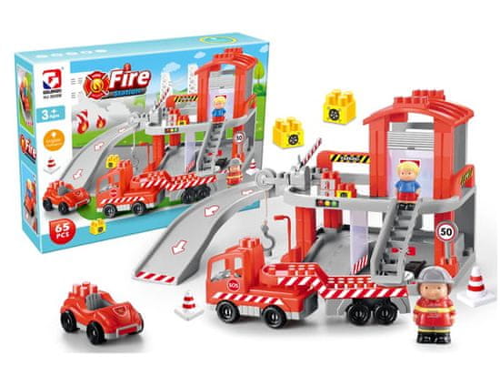 Iz kosov, ki so vključeni v komplet, lahko otrok sestavi gasilsko postajo in gasilska vozila, vključno z enim velikim z lestvijo Komplet vsebuje dve figuri: gasilca in fanta