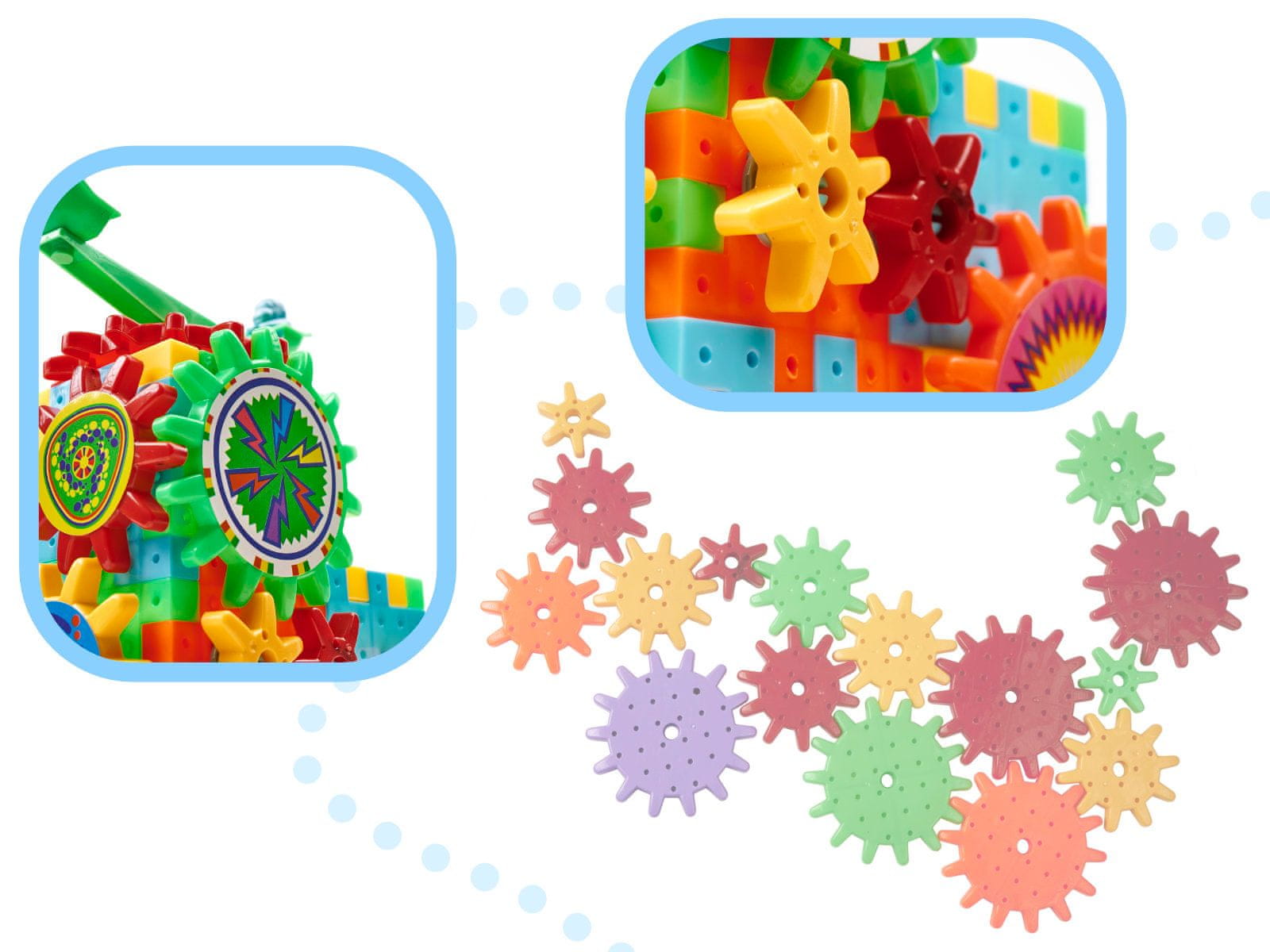 WOWO Gradniki za otroke - Izobraževalni gradniki - Čarobne kocke z zobniki in igriščem, 81 kosov
