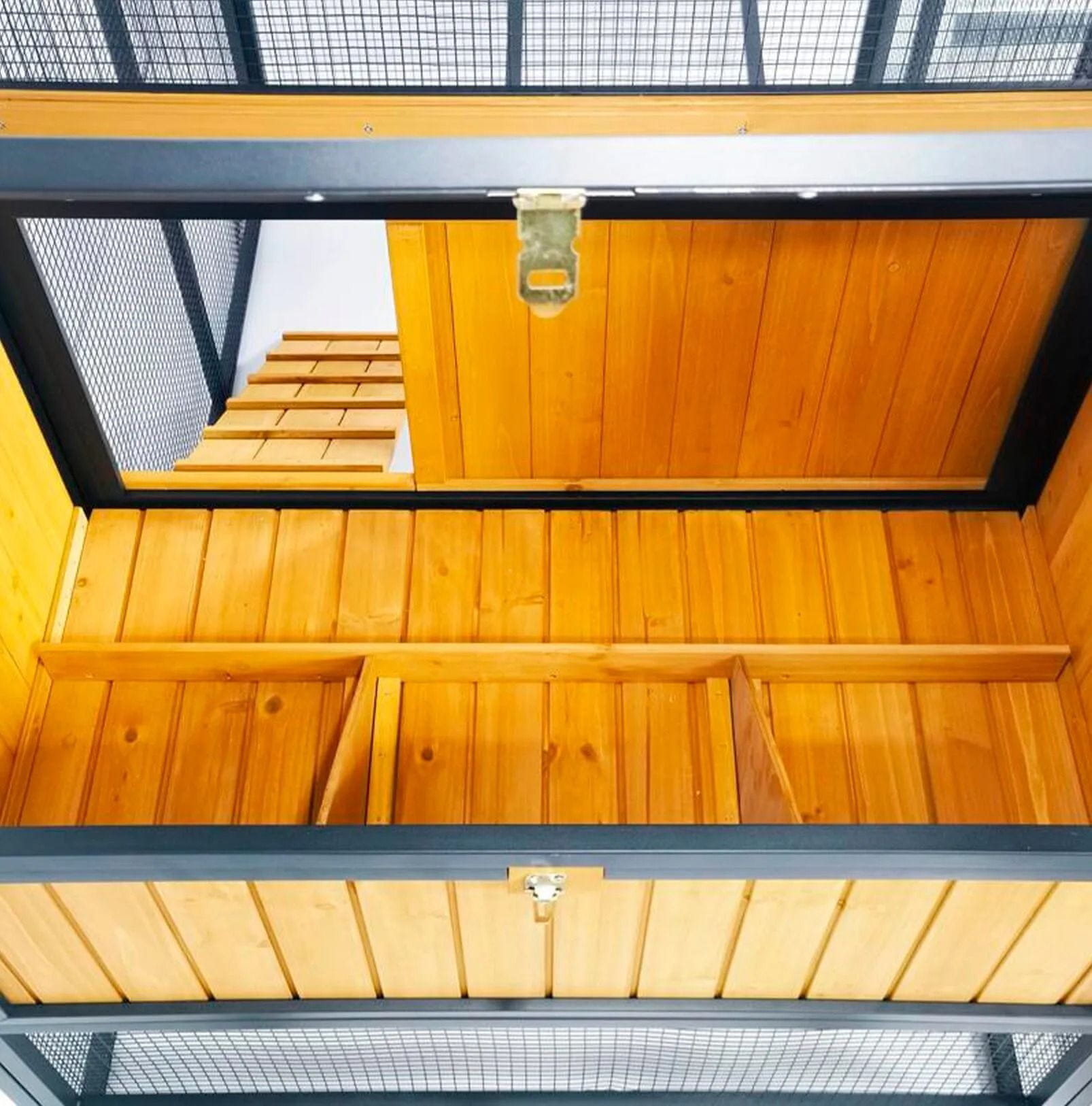 Glavna prednost tega modela je njegova mobilnost. Kokošnjak ima integrirana kolesa, zato ga je mogoče enostavno premikati na novo površino. To pomeni, da imajo kokoši redno dostop do sveže trave in nove podlage, hkrati pa se zmanjša nastajanje blata, vlage in razrite zemlje na enem mestu. Redno premikanje pomaga ohranjati bolj čisto okolico, zmanjšuje obremenitev tal in omogoča bolj naraven način reje. Za uporabnika to pomeni manj čiščenja, bolj urejeno dvorišče in boljši nadzor nad prostorom, kjer se kokoši zadržujejo.