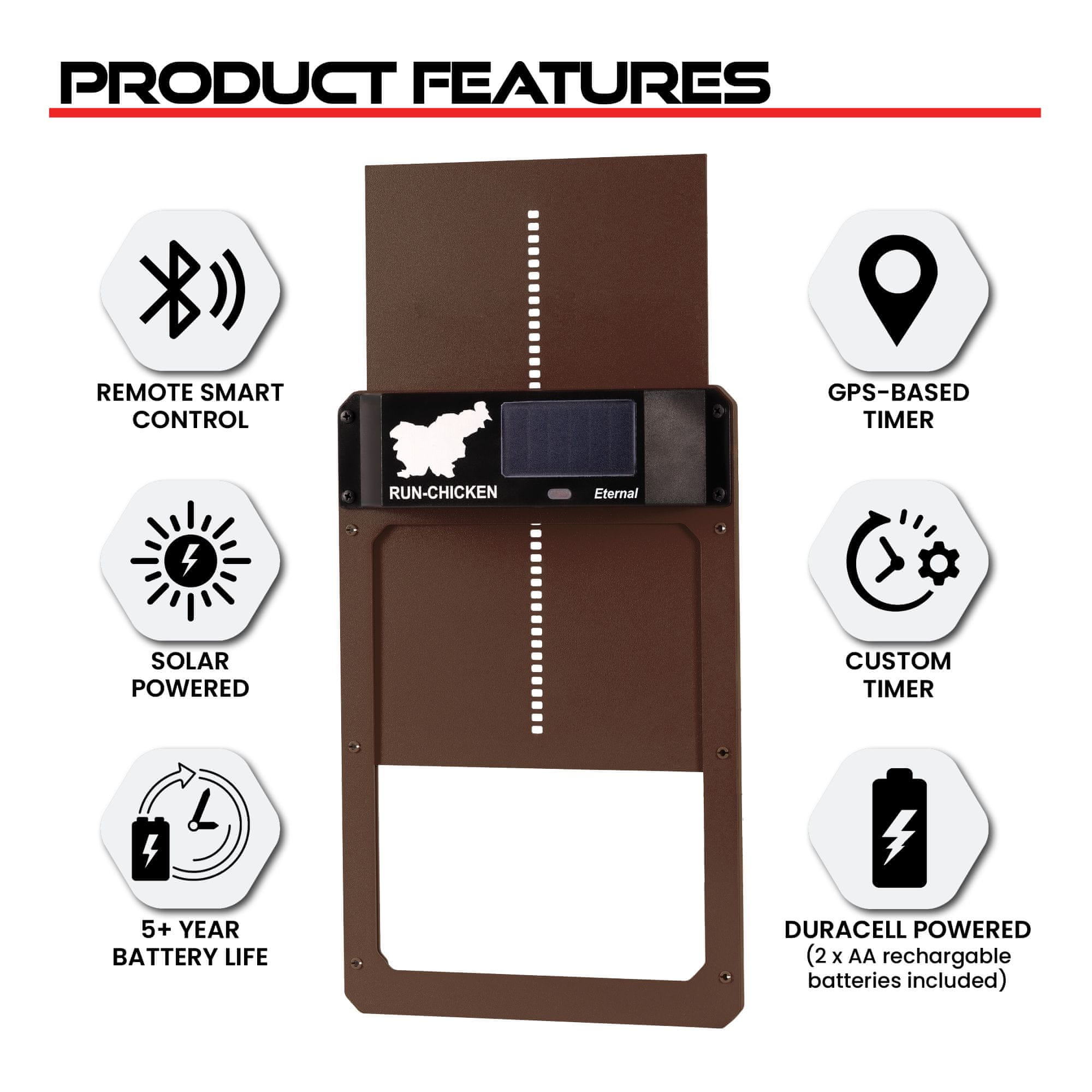 RUN-CHICKEN Solarna avtomatska vrata za kokošnjak Eternal – v rjavi barvi (z Bluetooth)