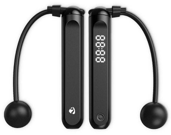 Nedis BTHJR10BK skakalnica uporablja preprost sistem vibracij, ki vas opozori, ko dosežete zahtevano število preskokov ali ko poteče časovna omejitev. Tako se lahko osredotočite na svoj nastop. Svoje rezultate lahko preprosto sinhronizirate z aplikacijo Nedis SmartLife in primerjate posamezne treninge. Aplikacija vam ponuja tudi 3 načine vadbe. Druge funkcije vključujejo možnost uporabe v zaprtih prostorih in na prostem. Kjer je okoli vas malo prostora, lahko PVC-vrvico nadomestite z brezžičnimi žogicami in tako dobite polnovredno brezžično skakalnico. V primeru vrvi za skakanje lahko dolžino enostavno prilagodite, da se prilagodi različnim višinam uporabnikov.