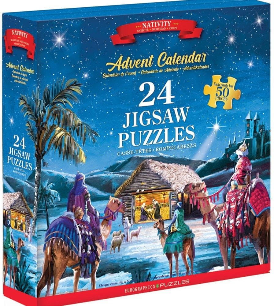 Puzzle adventni koledar: Jezusovo rojstvo 24×50 kosov, znamka EUROGRAPHICS. Celoten opis
