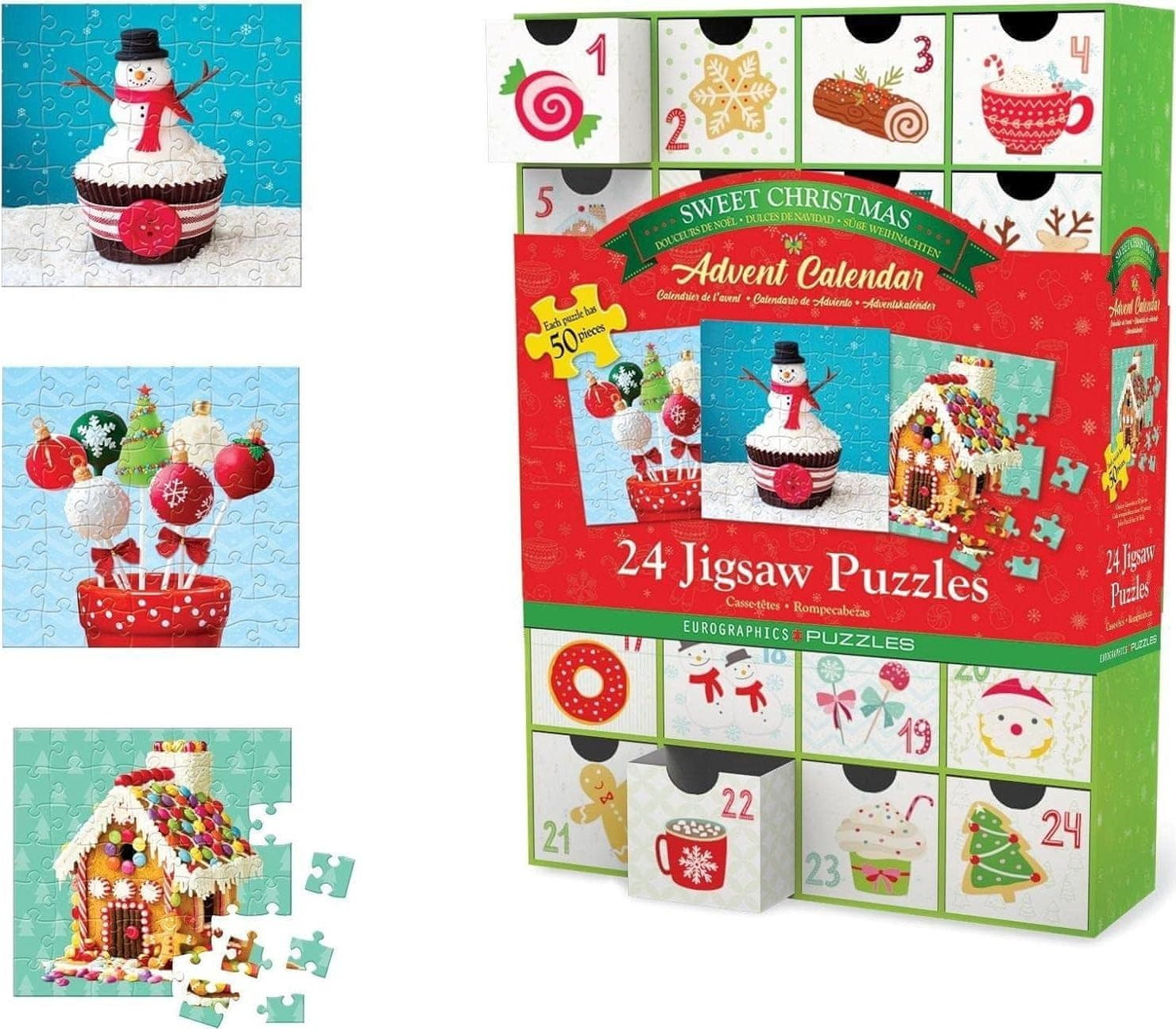 Puzzle adventni koledar: Sweet Christmas 24×50 kosov znamke EUROGRAPHICS. Celoten opis
