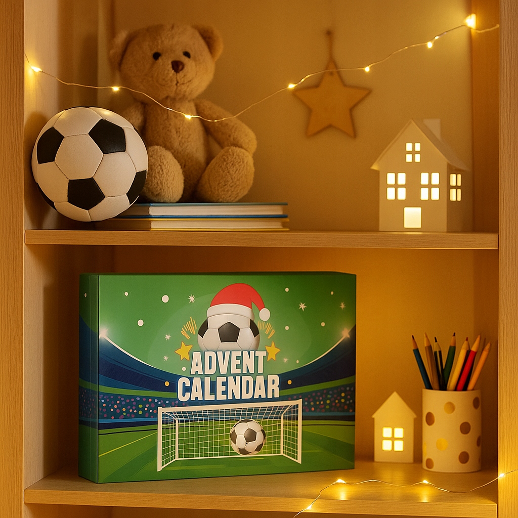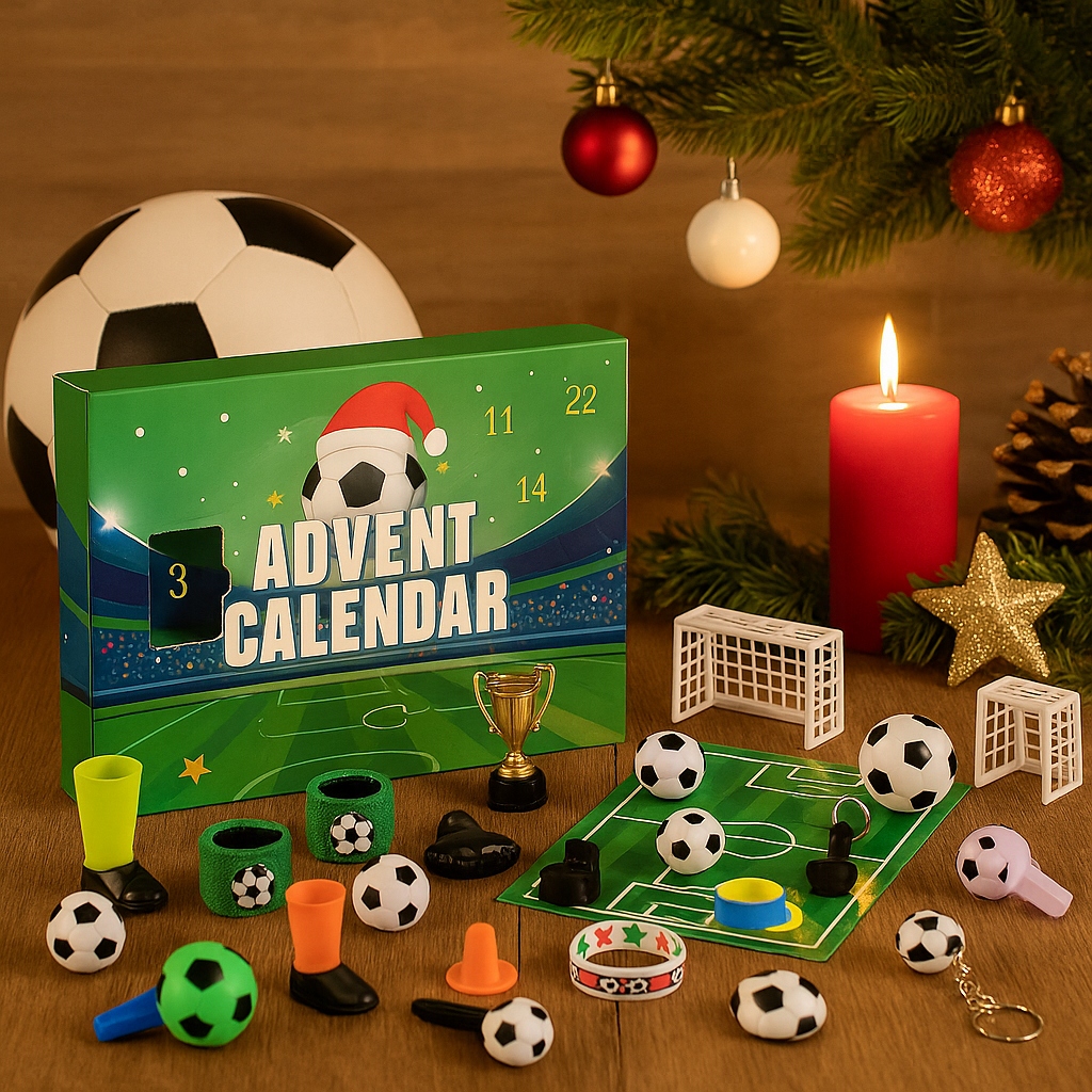 Prebudite športna čustva v decembrskih dneh ! Ta edinstven adventni koledar bo vsako jutro pred božičem polno veselja, presenečenj in nogometnih poudarkov . Popolno darilo za male nogometne navdušence.