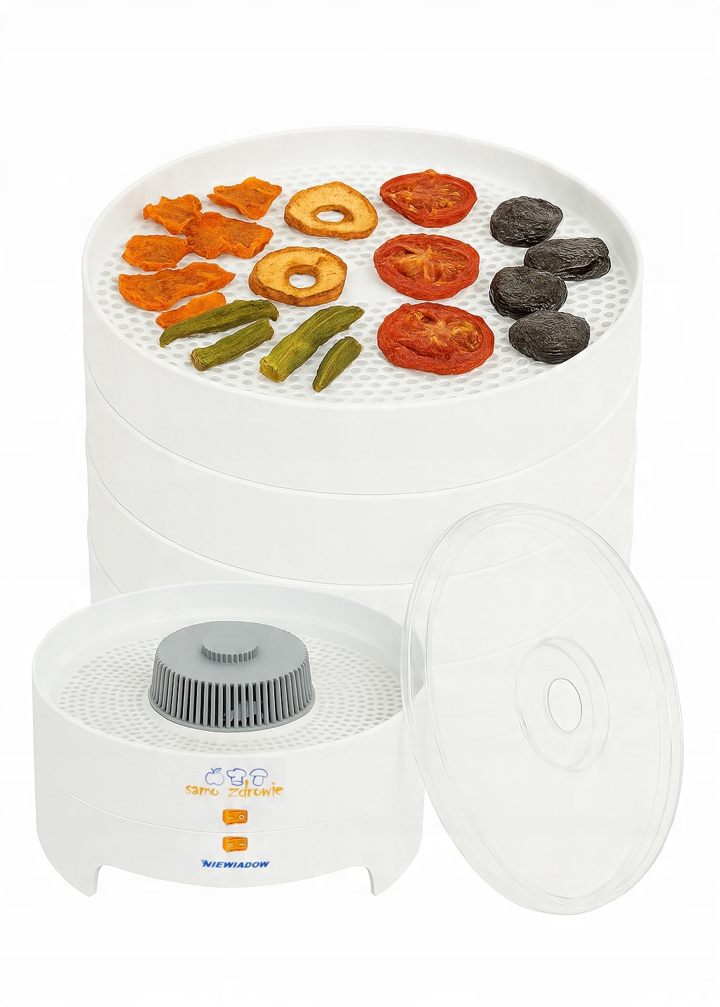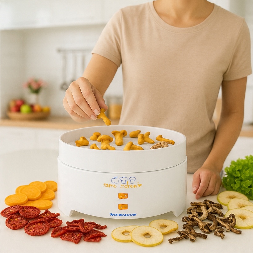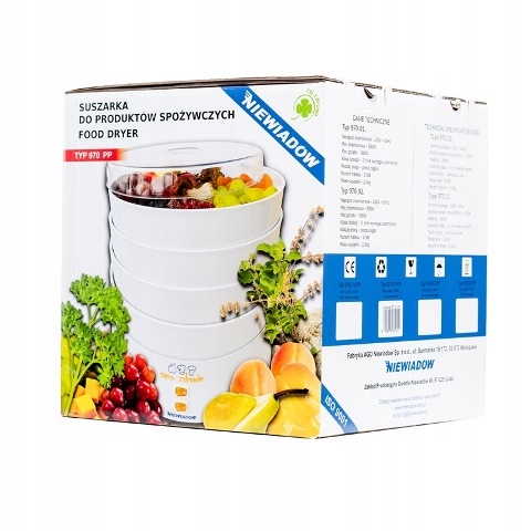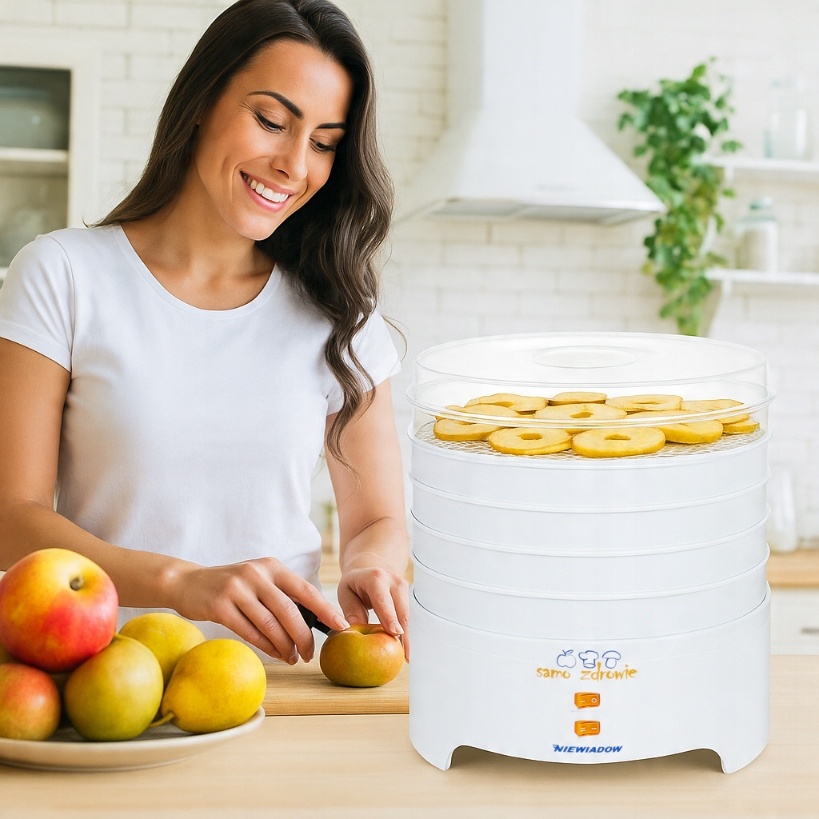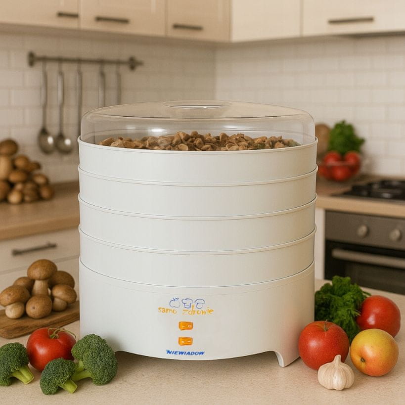 Spremenite svojo kuhinjo v oazo naravnih okusov s sušilnikom hrane Niewiadów 970.02 PP – zanesljivo napravo, ustvarjeno za tiste, ki cenijo zdrave prigrizke in domačo kakovost. Ta enostavna in robustna naprava, izdelana na Poljskem, vam omogoča enostavno sušenje gob, sadja, zelenjave, zelišč in celo mesa – , hkrati pa dlje časa ohranja njihovo hranilno vrednost, aromo in svežino.