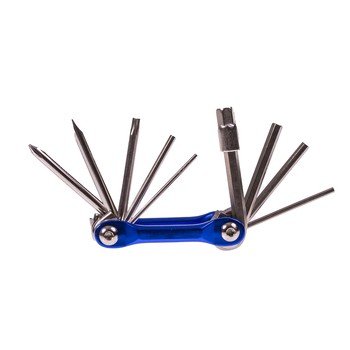 Vsebuje najpomembnejša orodja za demontažo, montažo in nastavitev delov kolesa,