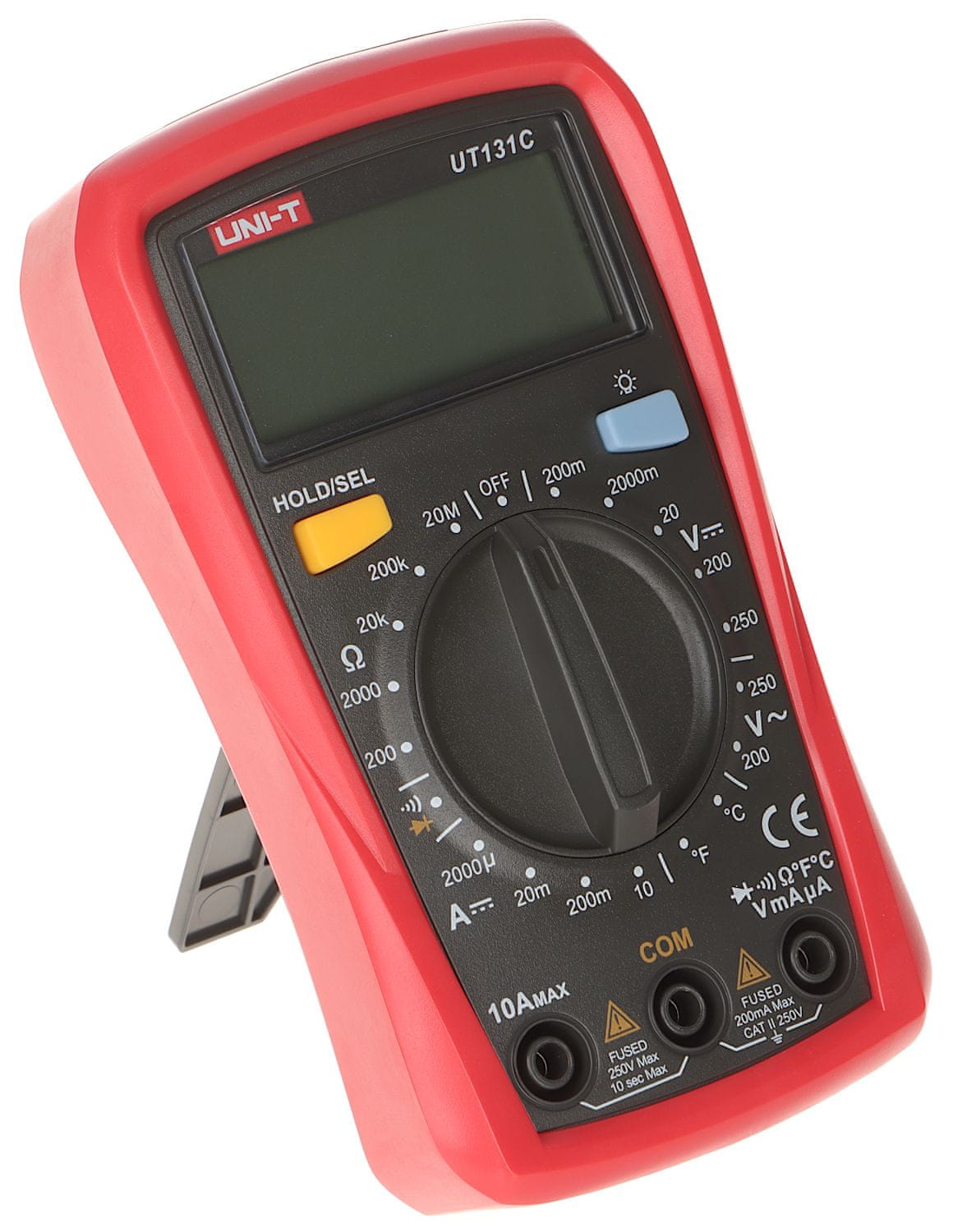 UT-131C je univerzalni digitalni merilnik, ki se uporablja za merjenje: napetosti, toka, upornosti, temperature, diod. Komplet vsebuje termočlen tipa „K“ (kromel/alumel).
