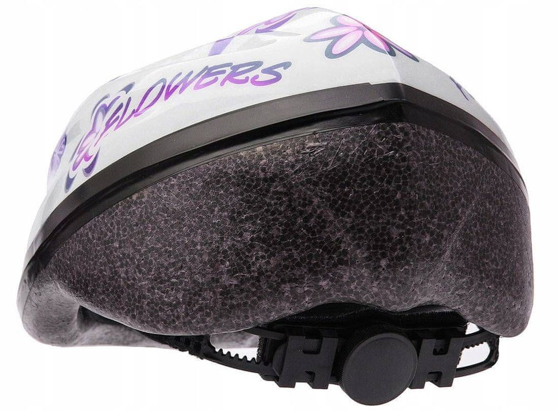 Varnostna čelada Meteor MV5–2 učinkovito ščiti otrokovo glavo v primeru padca. Njegova lupina z zunanjo plastjo PVC in notranjo plastjo EPS kaže visoko mehansko odpornost in zagotavlja zaščito pred poškodbami. Pet prezračevalnih odprtin omogoča pretok zraka v notranjost, kar učinkovito odvaja toploto od aktivne otroške glave.
