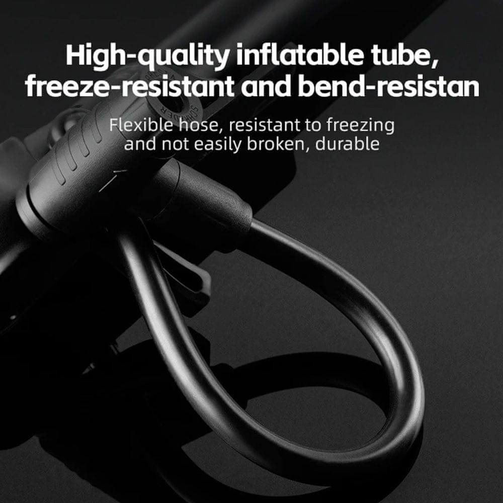 Inovacija pri polnjenju pnevmatik: Kolesarska tlačilka Rockbros 42310006001. Ponuja izjemno vsestranskost. Primerna je za ventila Presta in Schrader, se zloži za enostavno shranjevanje in podpira tlak do 120 PSI. Uporabljate jo lahko kot ročno ali talno tlačilko – prilagodite se svojim potrebam. Črna, elegantna in pripravljena na vsako pustolovščino.