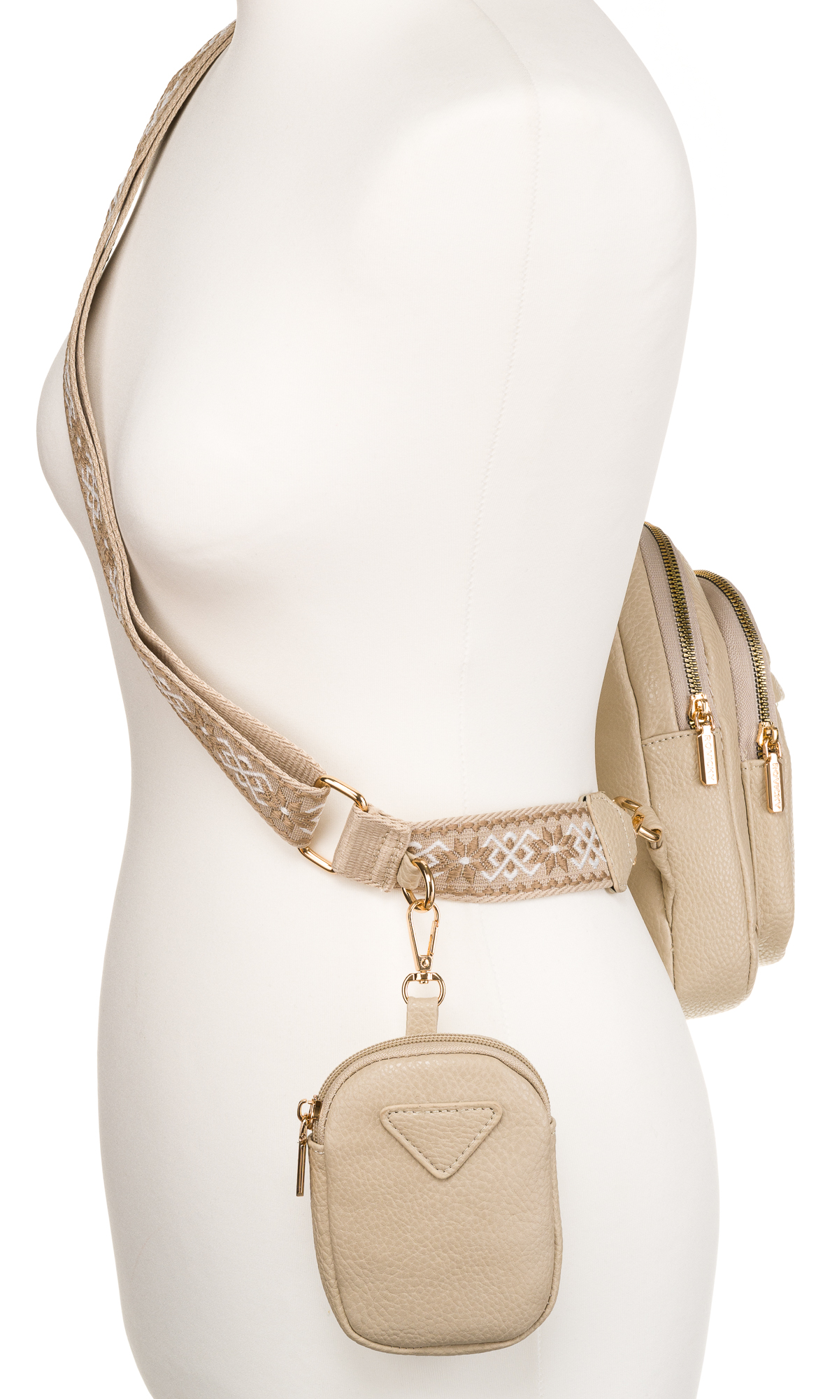 Torbica visi na 3,5 cm širokem, nastavljivem traku (74–125 cm).