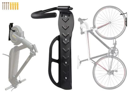 Stenski nosilec za kolo ponuja enostavno rešitev za shranjevanje vašega kolesa ali pa skiroja. Nosilec je opremljen s kavljem za obešanje sprednjega kolesa in vodilno ploščo. Nosilci se pritrdijo v steno z priloženimi vijaki. Kovinska konstrukcija z gumiranim kavljem preprečuje nastanek poškodb okvirja platišč.