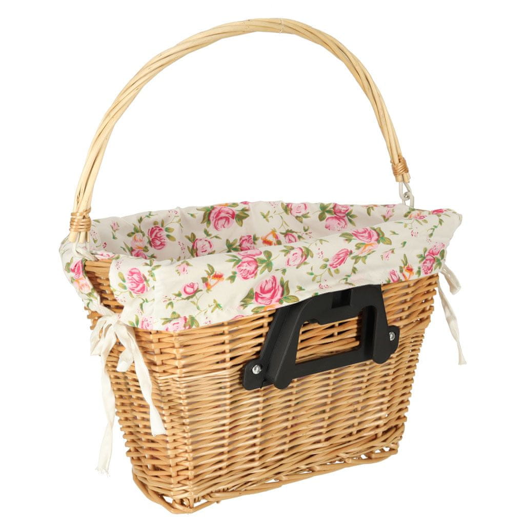 WOWO Pletena košara za kolo - sprednja pletena košara za kolo s cvetličnim tkanim vstavkom