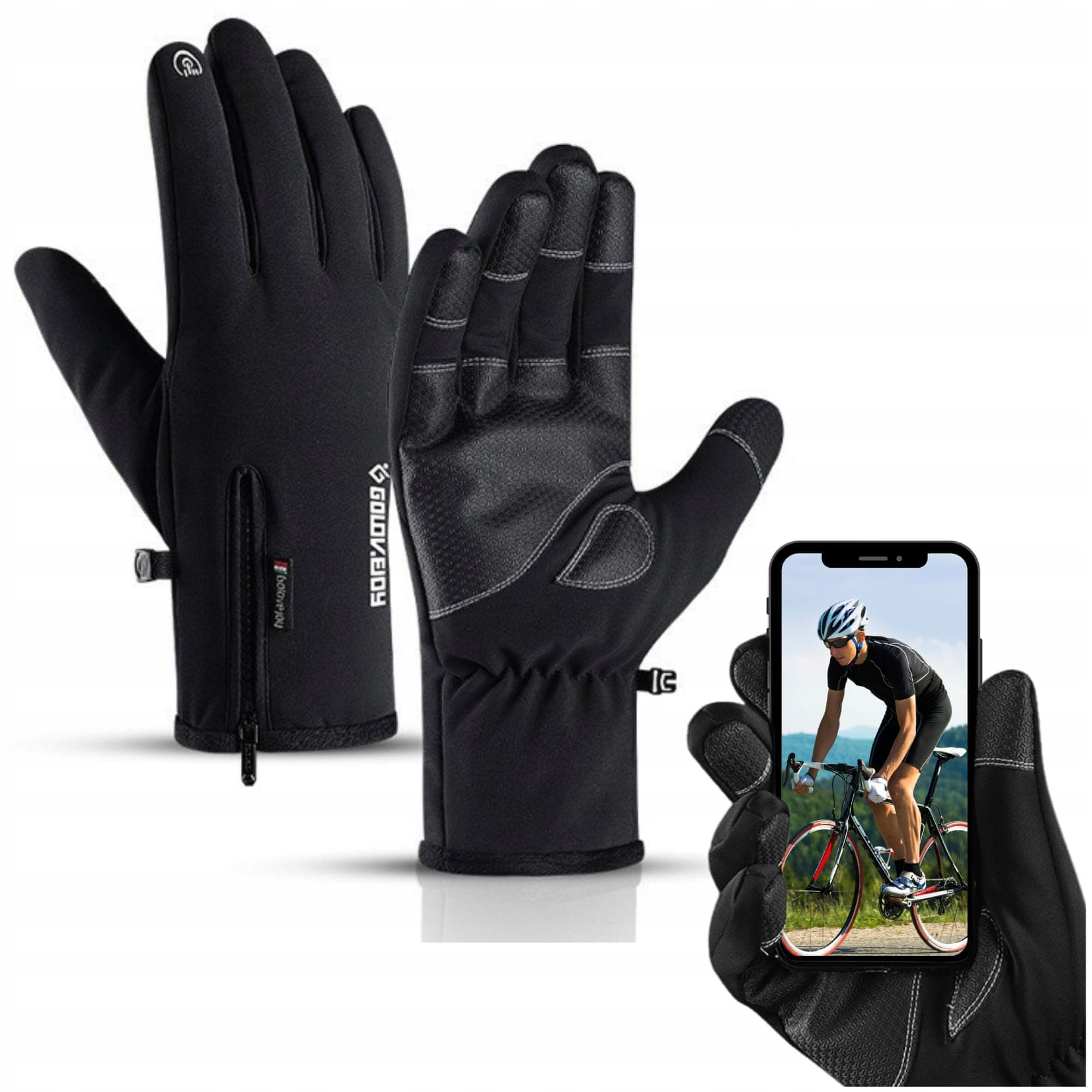 RĘKAWICZKI RĘKAWICE ROWEROWE WODOODPORNE SPORTOWE DOTYKOWE OCIEPLANE M1 L