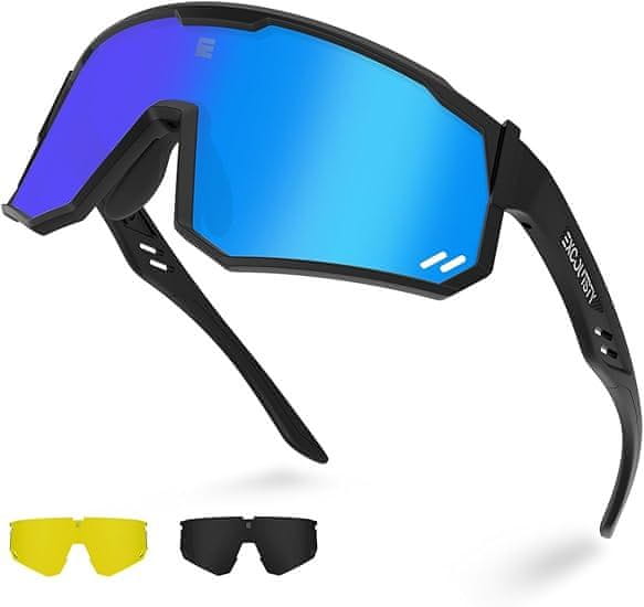 Kolesarska očala opremljena s 4 zamenljivimi lečami z UV zaščito. Barvne leče obnovijo pristne barve, primerne za sončne in oblačne dni. Črne polarizirane leče lahko učinkovito odpravijo bleščanje in so primerne za okolja z močno svetlobo. Rumene leče so primerne za nočna in temna okolja.