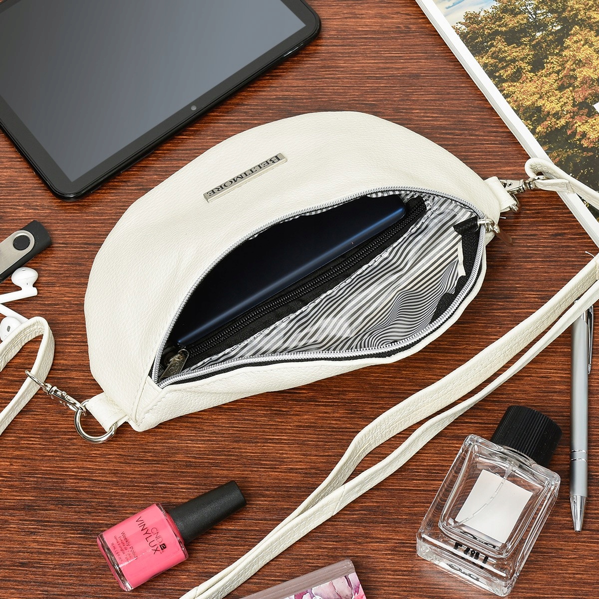 Ženska usnjena torbica za okoli pasu, izdelana iz najkakovostnejših materialov! Kenguru žep je zelo prostoren, usnje pa mehko in prijetno na dotik. Notranjost je podložena, z dodatnim žepom na zadrgo. Usnjen trak je nastavljiv in se na torbo pritrdi z zaponko. Originalni izdelek Beltimore!