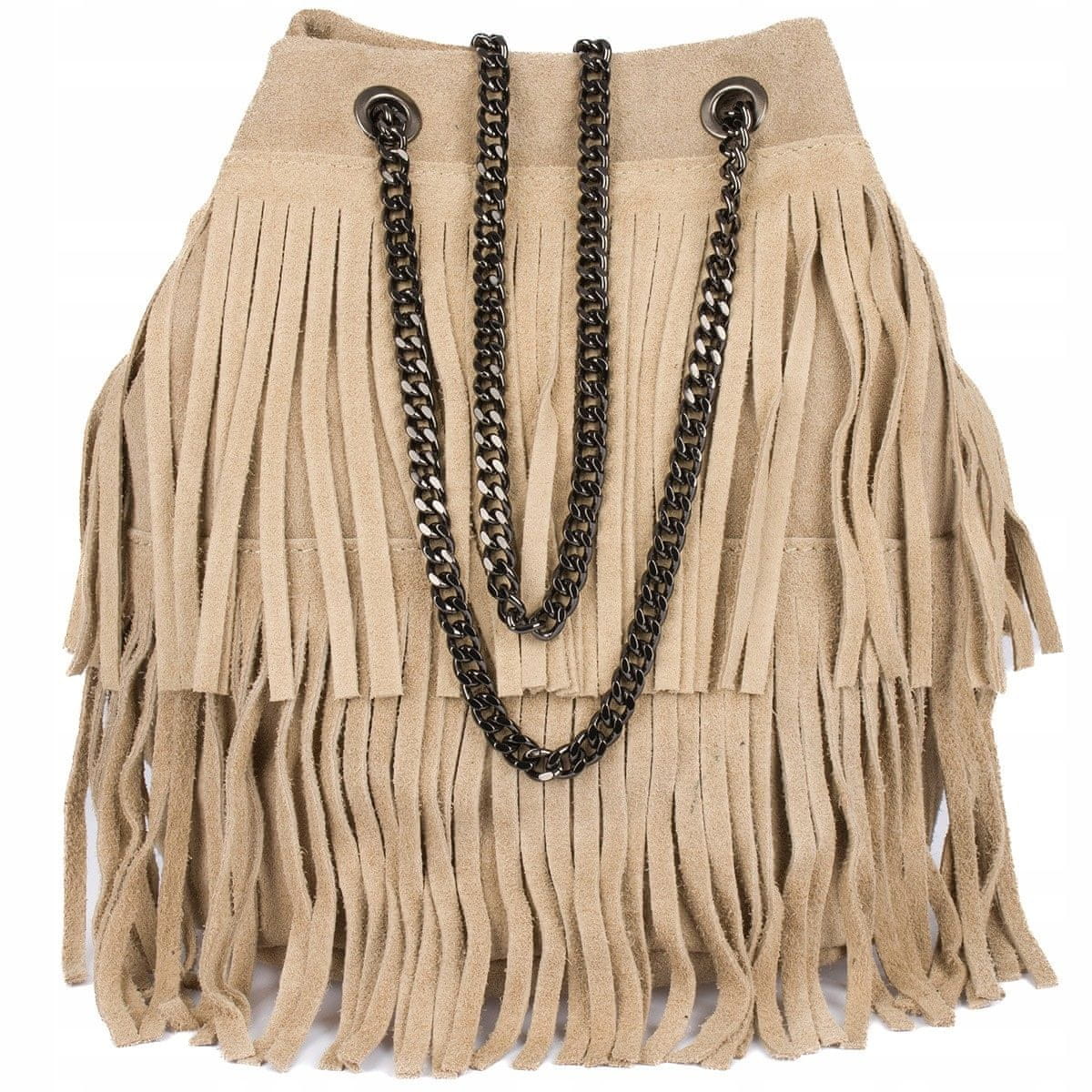 shumee Ženska torba, usnjena semiša, resice, naramnice, verižica, italijanska