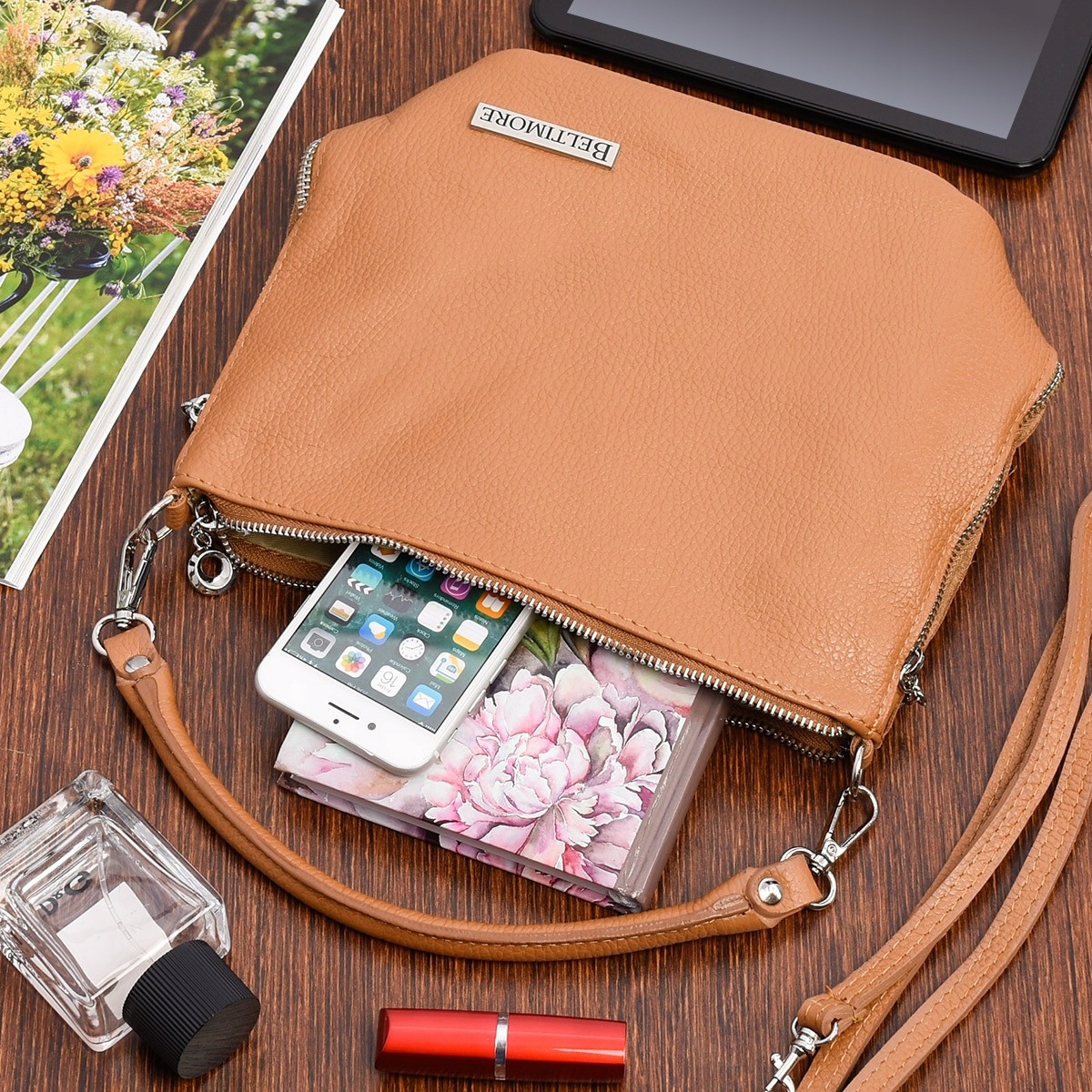 shumee Ženska usnjena kurirska torba Camel iz italijanskega Beltimore usnja