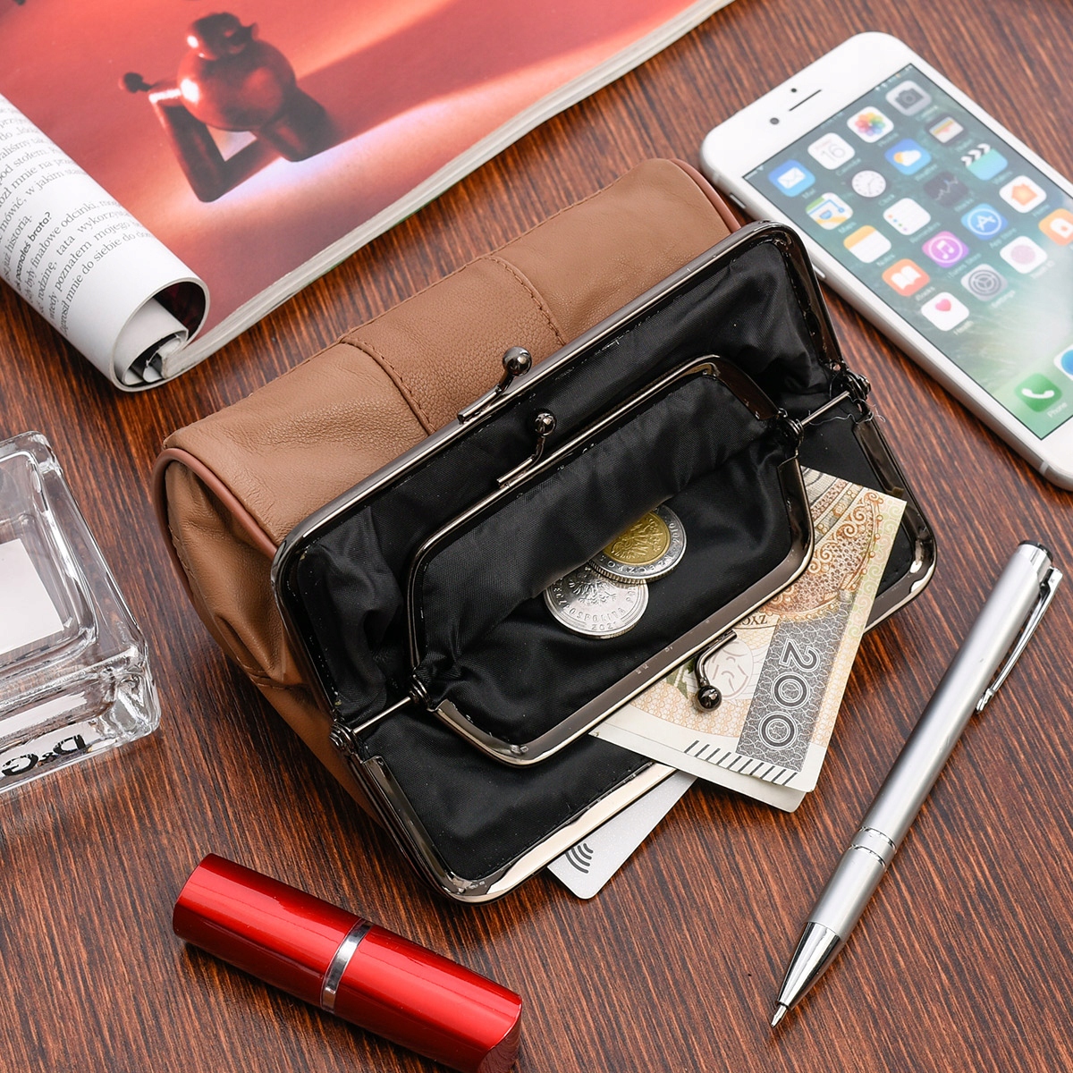 Čudovita ženska usnjena torbica, elegantna majhna denarnica.