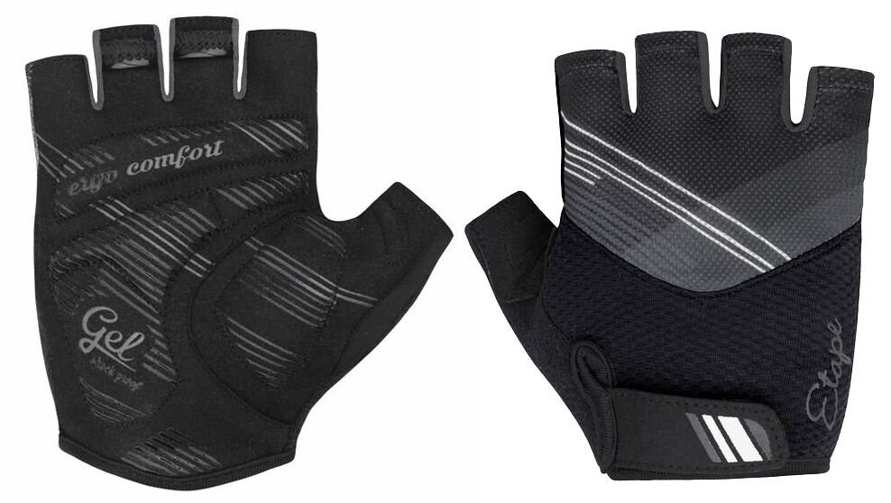 Kolesarske rokavice spadajo med osnovno opremo vsakega dobrega kolesarja. Najprej ščitijo dlani pred odrgninami med padcem, povečujejo splošno udobje med vožnjo in so tudi modni dodatek k vaši kolesarski opremi. Kolesarske rokavice Etape Liana s kratkimi prsti imajo hrbet iz elastičnega in zračnega materiala za odlično prezračevanje in udobje dlan z gelsko podlogo GelPro (zagotavlja največjo zaščito dlani pred vibracijskimi udarci in ščiti roko v primeru padca s kolesa) in nedrsečo silikonsko mrežico TakeOff za enostavno snemanje z rok antibakterijski frotir na palcu za brisanje znoja ter preprosto zapenjanje z Velcro.