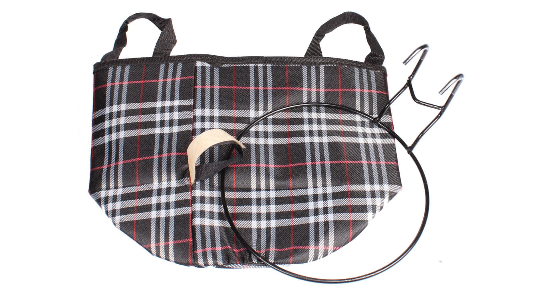 Tekstilna viseča košara za kolo, ki služi tudi kot nakupovalna torba. Premer 23 cm, višina 30 cm. Prodaja se v pakiranju po 4 kosi. Celoten opis
