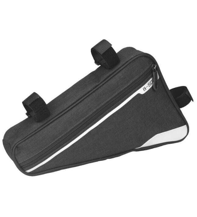 Torba za kolo B-SOUL Triangle 2.0 ima preprosto in preverjeno zasnovo. Je dovolj velika za shranjevanje osebnih stvari in dovolj majhna, da med vožnjo ne ovira. Triangle 2.0 ima en predal z zadrgo in en zunanji mrežast predal s hitrim dostopom. Tako ima Triangle 2.0 prostor ne le za ključe, denarnico in mobilni telefon, temveč tudi za kolesarske rokavice ali nujno orodje za popravila. Njegova oblika zmanjšuje zračni upor in ne ovira nog pri pedaliranju. Torbica Triangle 2.0 je izdelana iz močnega poliestrskega platna z notranjo PU prevleko, ki ščiti vsebino torbice pred zmočenjem tudi v nenadni močni nevihti. Mere pravokotne torbe v obliki trikotnika so 34 × 29 × 20 × 5 cm, kar pomeni, da je njena prostornina skoraj 1,5 litra. Namestitev torbe je preprosta. Preprosto pritrdite tri všite trakove z velcro na konstrukcijo kolesa in končano. Sodobnakolesarska oprema B-SOUL bo poskrbela, da bodo vaša kolesarska potovanja prijetnejša.