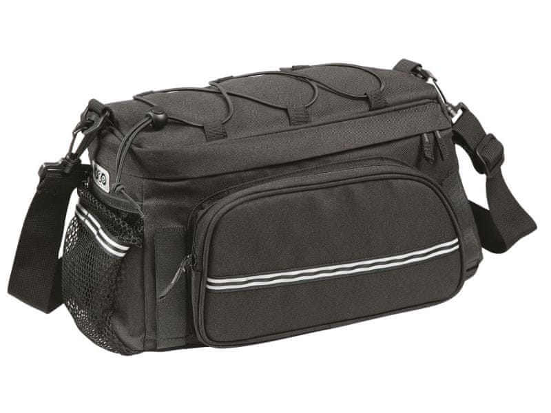 Prtljažna torba, za kolo, za zadnji prtljažnik, prostornina 15 l, trak, vodoodbojna, odsevni varnostni elementi 3MScotchliteTM, 2 notranja in 2 stranska žepa na zadrgo, zadnji žep s pritrditvijo luči. Celoten opis