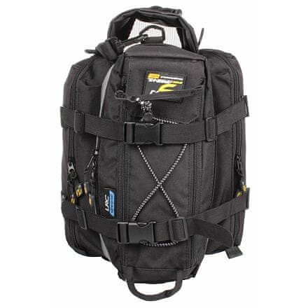 Večnamenska torba 450 za zadnji ali sprednji nosilec z možnostjo povečanja prostornine torbe – če odprete zgornjo zadrgo. Torba s prostornino 40 × 25 × 19–29 cm in prostornino 12 litrov ima en velik notranji žep, dva zunanja stranska žepa z zadrgo in dva manjša žepa za praktično porazdelitev tovora. Pritrditev torbe na zgornji nosilec je preprosta s tremi zaponkami na velcro. Zategnite dva kompresijska trakova, da pritrdite tovor, ki ga prevažate. Ko je torba ločena, jo lahko zaradi naramnega pasu udobno nosite. Torba 450 je izdelana iz visokokakovostnega vodoodpornega (ne vodoodpornega) materiala, ima trdno lupinsko dno, zato odlično drži obliko in je stabilna. Torbi je priložen tudi pokrov za zaščito pred umazanijo in manjšo vlago (ni vodoodporen, ne služi kot dežni plašč). Na torbi so všiti varnostni odsevni elementi za boljšo vidljivost. S praktično torbico 450 Pannier boste na potovanju s kolesom uživali v udobju in priročnosti. Parametri.