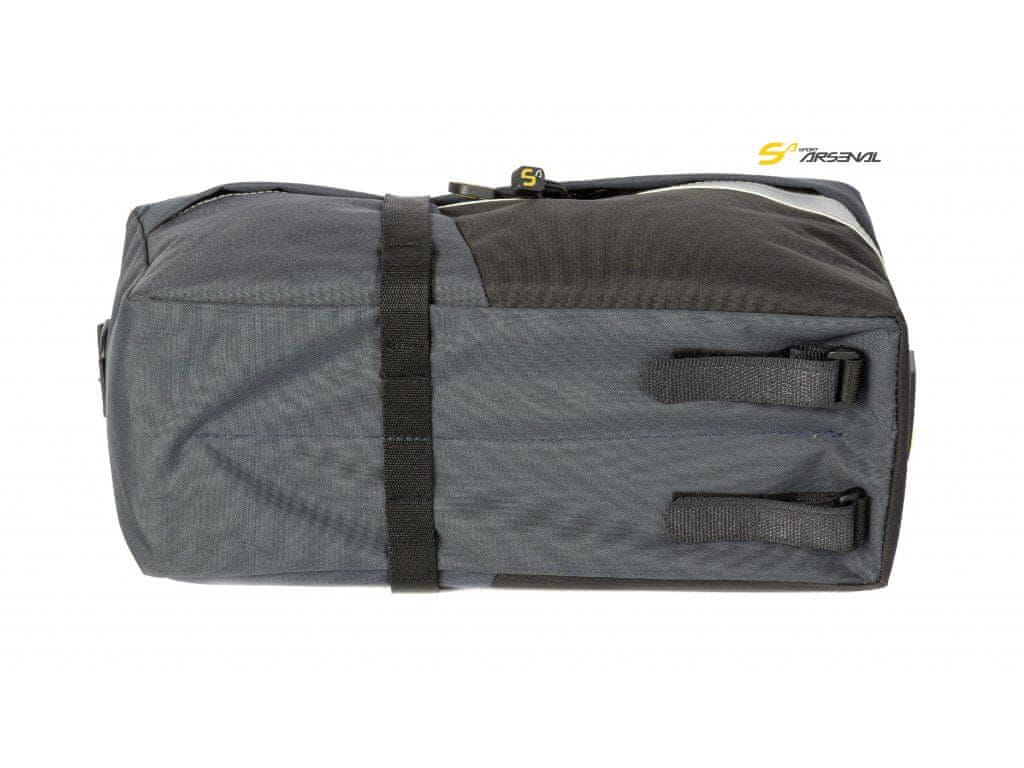 Praktična torba srednje prostornine z velcro zapenjanjem na nosilec. Idealna torba za kombinacijo z nosilcem, nameščenim na sedežno cev – npr. čl. 220, 209. Na splošno združljiva z vsemi nosilci Sport Arsenal. Stranski elastični trakovi se uporabljajo za spreminjanje prostornine torbice (pull-release), hkrati pa tudi za fiksiranje tovora. Torbici je priložen priročen naramni trak. 3M varnostni odsevni trak na torbici zagotavlja vašo boljšo vidljivost na cesti.