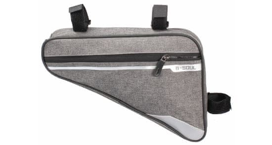 Torba za kolo B-SOULTriangle 2.0 ima preprosto in preverjeno obliko. Je dovolj velika za shranjevanje osebnih stvari in dovolj majhna, da med vožnjo ne ovira. Triangle 2.0 ima en predal z zadrgo in en zunanji mrežast predal s hitrim dostopom. V torbi Triangle 2.0 ni prostora le za ključe, denarnico in mobilni telefon, temveč tudi za kolesarske rokavice ali osnovno orodje za popravila. Oblika torbe zmanjšuje zračni upor in ne ovira nog pri pedaliranju. torba Triangle 2.0 je izdelana iz močnega poliestrskega platna z notranjo PU prevleko, ki ščiti vsebino torbe pred zmočenjem tudi v nenadnih močnih nevihtah. Dimenzije torbe v obliki pravokotnega trikotnika so34 × 29 × 20 × 5 cm in ima tako prostornino skoraj 15 litrov. Namestitev torbe je preprosta. Preprosto pritrdite tri všite trakove Velcro na konstrukcijo kolesa in končali ste. sodobna kolesarska oprema B-SOUL bo poskrbela, da bodo vaši kolesarski izleti prijetnejši.