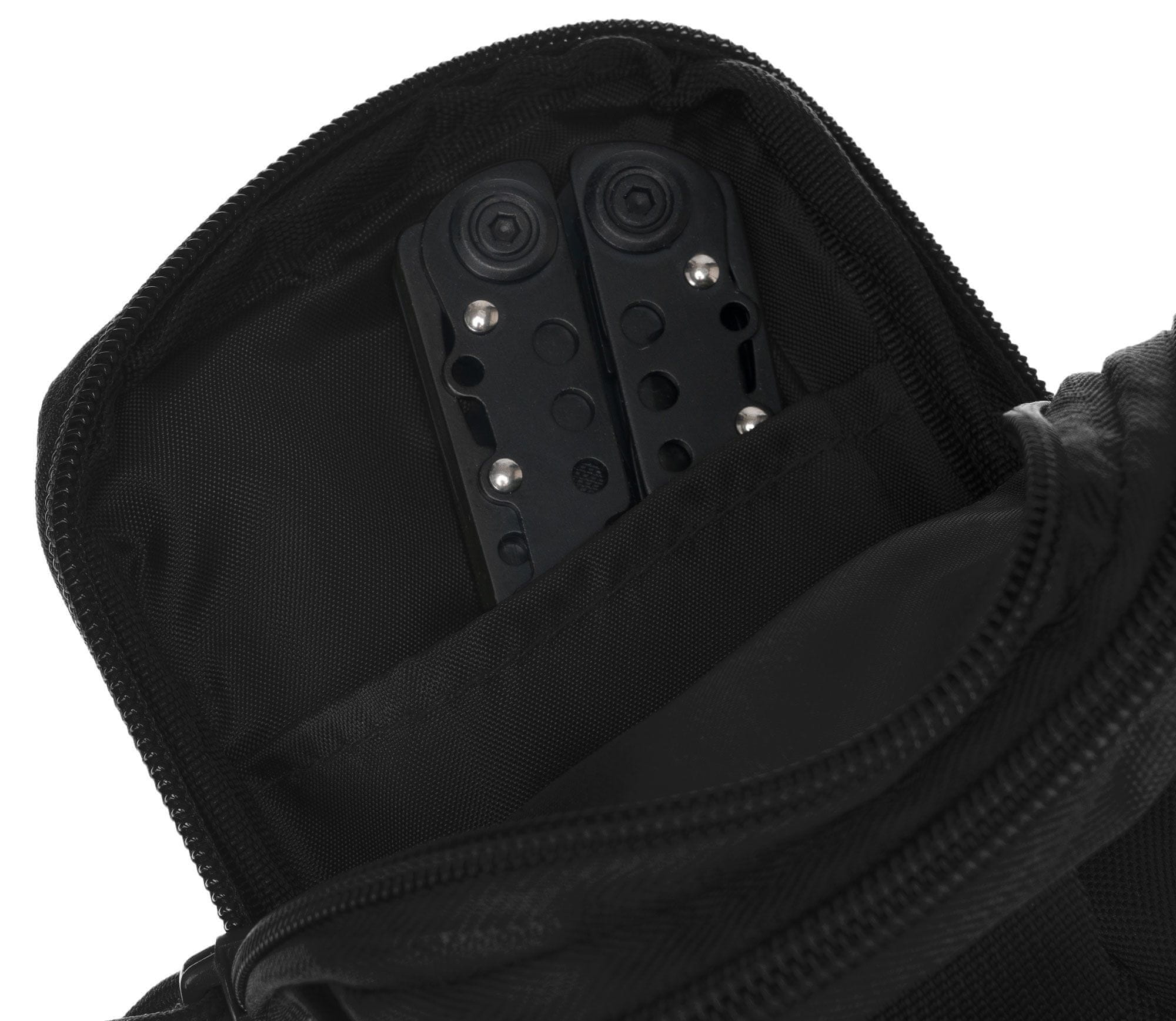 Dodatni zunanji žepi na sprednji strani so idealni za vaš mobilni telefon, majhno svetilko ali pisalo. Predal za telefon se zapira z zavihkom in je nastavljiv, kar omogoča pritrditev na kateri koli model, ki je na voljo na trgu.