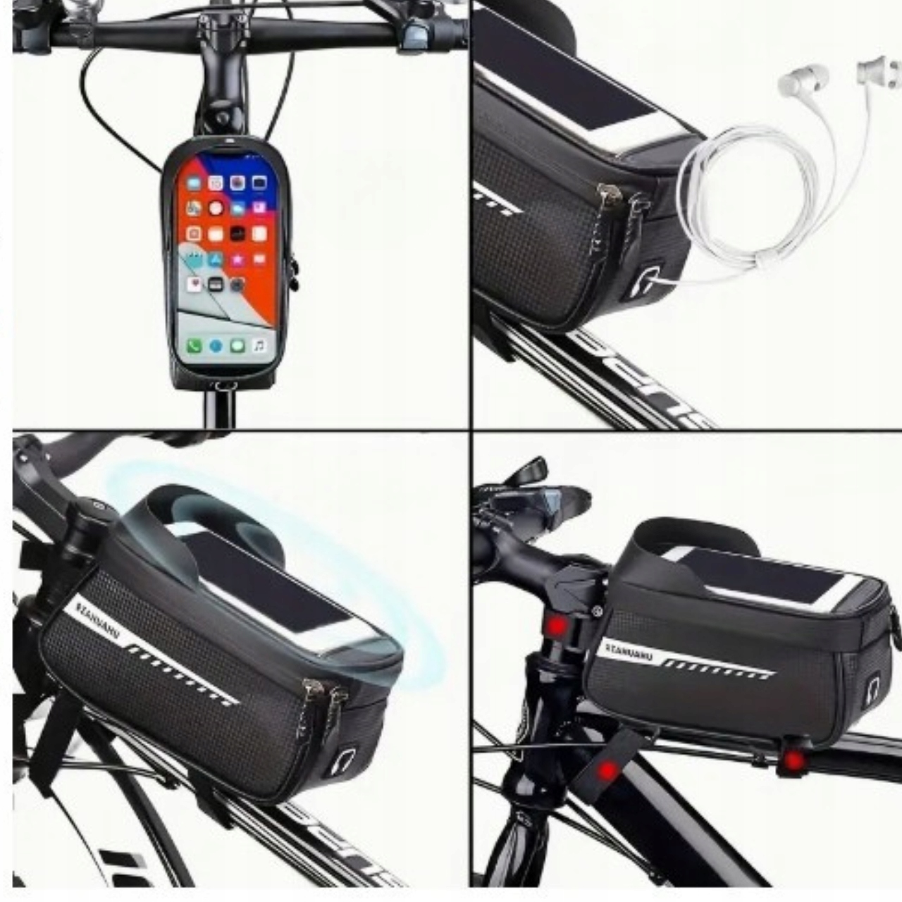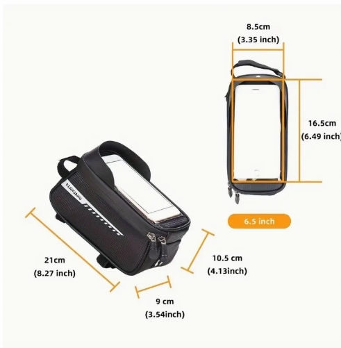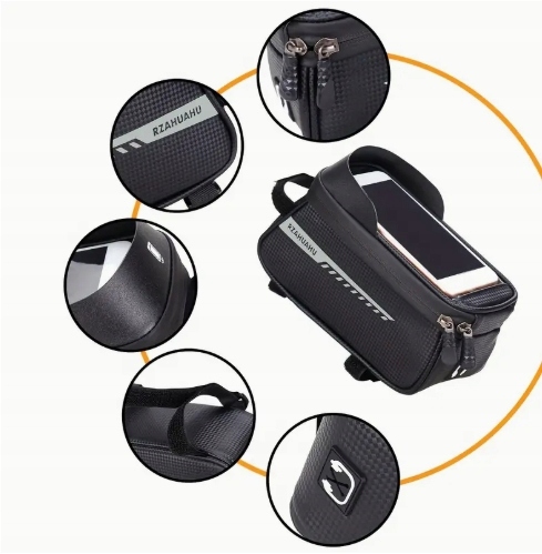 Popolna kolesarska torba, ki bo spravila vse vaše potrebščine med vožnjo! Hvala zavodoodporen materialvaše stvari bodo ostale suhe tudi v dežju.Pameten dizajnz držalom za telefon vam omogoča priročno uporabo vaše naprave, ne da bi se morali ustaviti.Varna in praktična rešitevza vsak izlet s kolesom!