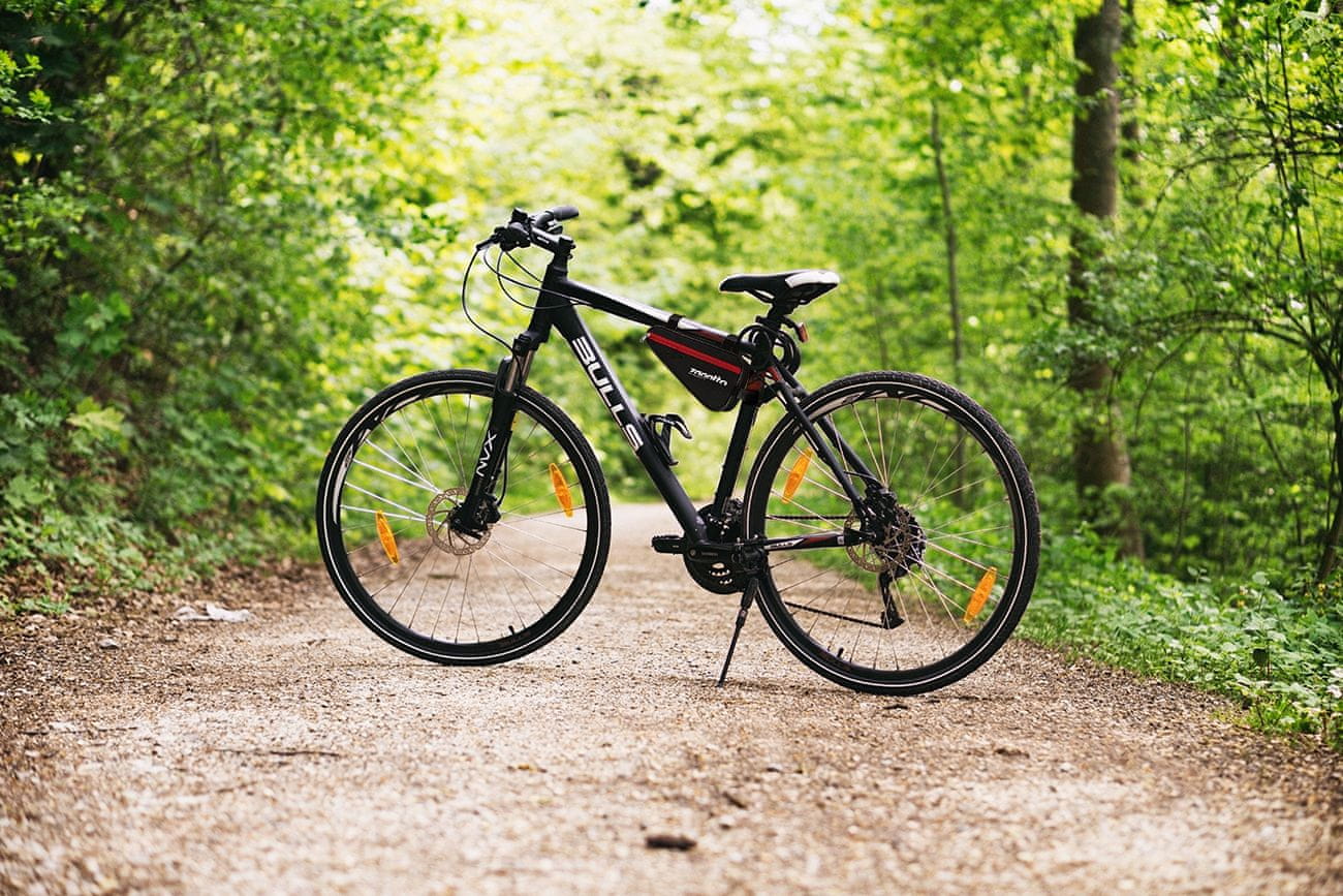 Prtljažnik za kolo Zagatto ZG87. Izjemno udobna torba za kolo trikotne oblike z odsevno zadrgo. Če morate med vožnjo s kolesom nositi dokumente, orodje, rezervno zračnico, ključe in denarnico, bo ta torba odlična izbira! Lastnosti izdelka: Šifra: zg87 Blagovna znamka: zagatto Kapaciteta: 2 l Teža: 100 g Dominantna barva: Črna Dominantni material: Cordura Zapenjanje: Zadrga Širina: 28 cm Višina: 17 cm Globina: 6 cm Dodatne lastnosti: Nosilni ročaj – trije ježki, vodoodpornost, ojačani šivi, ojačani robovi. Prtljažnik Zagatto smo zasnovali tako, da ga lahko zlahka dosežete med vožnjo in hitro zgrabite, kar potrebujete. Tanka oblika in uporabljen material zagotavljata minimalen upor proti vetru med vožnjo. Torba se enostavno pritrdi na okvir z ježkom. Stabilna namestitev zagotavlja, da so vaše stvari varne tudi med vožnjo pri visokih hitrostih po neravnem terenu. Vemo, kako pomembne so podrobnosti. Ustvarjamo izdelke, ki jih pričakujemo in uporabljamo sami.