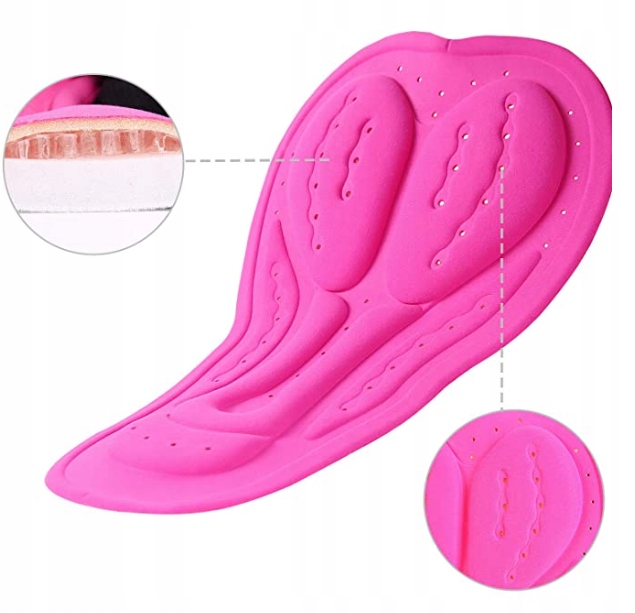 Udobna, mehka, a tanka gelska blazinica anatomske oblike zagotavlja blaženje udarcev in povečuje udobje med kolesarjenjem. Blazinica je od zunaj komaj vidna. Prikazane fotografije prikazujejo notranjost kratkih hlač.