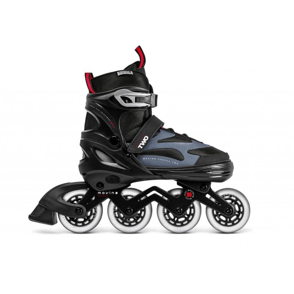 Kako najbolje poskrbeti za prve trenutke na rolerjih? Izberite svoj model pametno. Sivo-rdeči Movino Cruzer Two imajo trojni sistem zapenjanja, trpežne ležaje ABEC-7 in prozorna kolesa iz sintetične gume. To je odlična izbira za vašo prvo vožnjo … in nato za naslednjo in naslednjo! Zahvaljujoč sistemu za nastavitev škornja bodo zlahka služili več sezon.