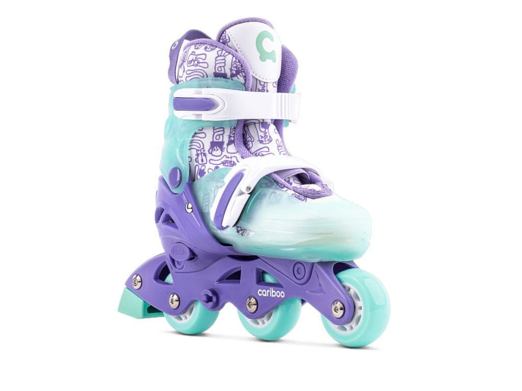 Rolerji Cariboo Step One so namenjeni najmanjšim uporabnikom. Imajo preprosto nastavljivo velikost, zahvaljujoč kateri lahko nastavite dolžino vložka čevlja. Zgolj pritisnete na gumb PUSH in prilagodite velikost čevlja otrokovemu stopalu. Vsi starši se zavedajo kako hitro otroci rastejo in ta funkcija omogoča, da bodo rolerji uporabni več kot le eno sezono. Otroški rolerji Cariboo imajo pomožna stranska kolesca, ki otroku pomagajo držati ravnotežje, obenem pa ga ne motijo pri učenju vožnje. Ko vaš otrok osvoji osnove, lahko kolesca po želji odstranite, otrok pa se lahko preizkusi v vožnji z rolerji brez pomožnih kolesc!
