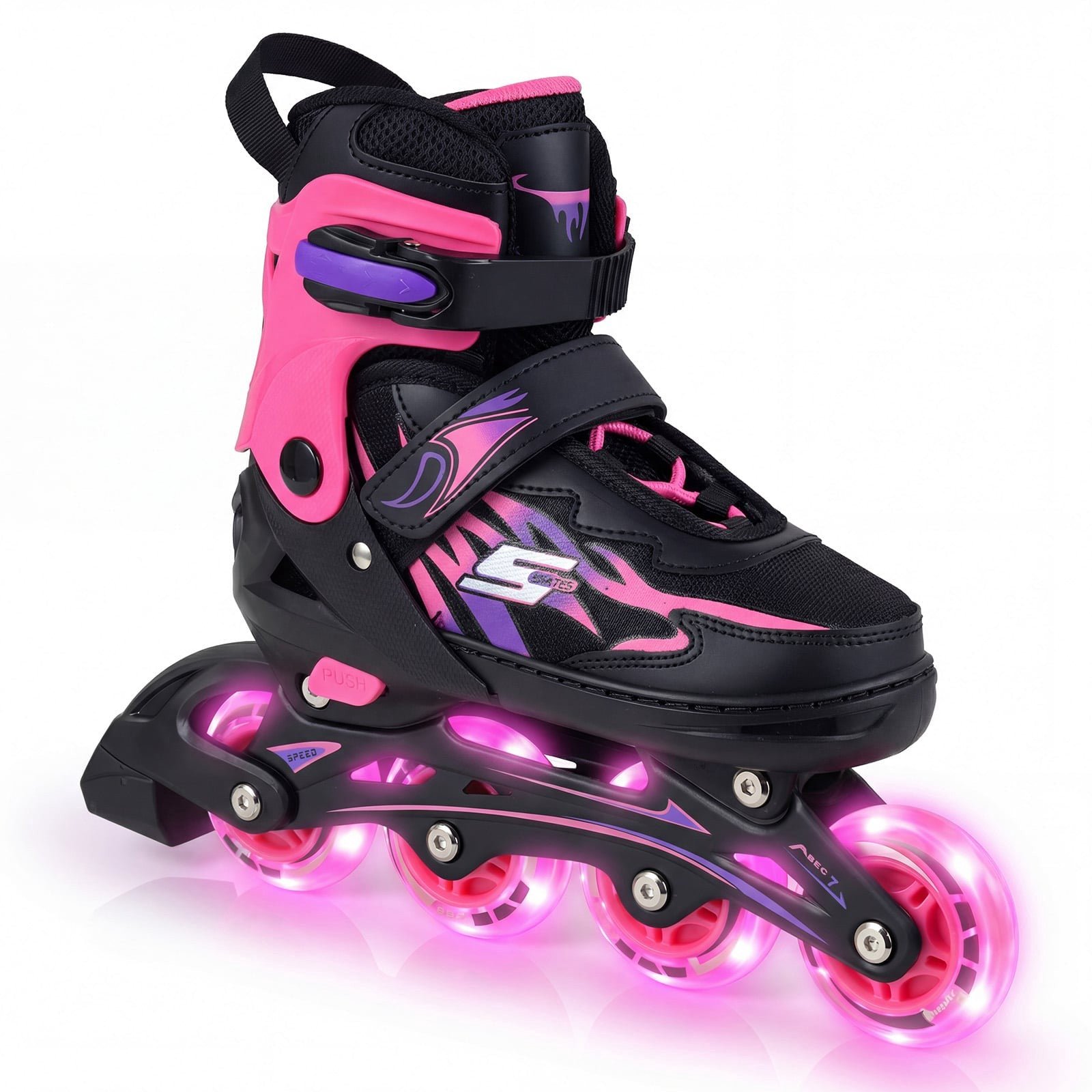 Northix Nastavljivi otroški rolerji z LED kolesi, roza, ABEC-7 ležaji in PU kolesi, velikost 38-41