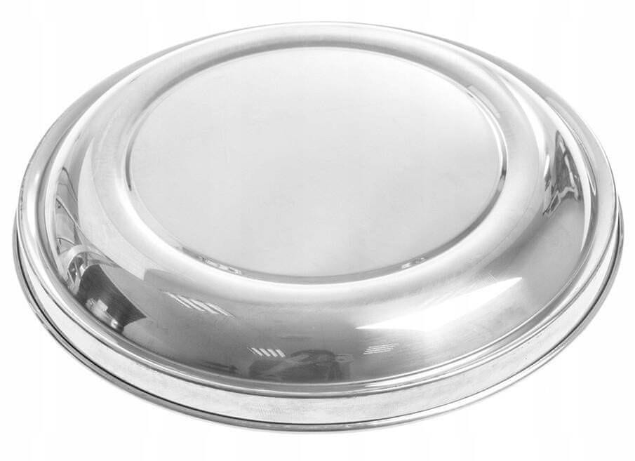Komplet jeklenih loncev, sestavljen iz dveh klasično zloženih loncev, zaprtih s pokrovom, ki se lahko uporablja kot ponev.