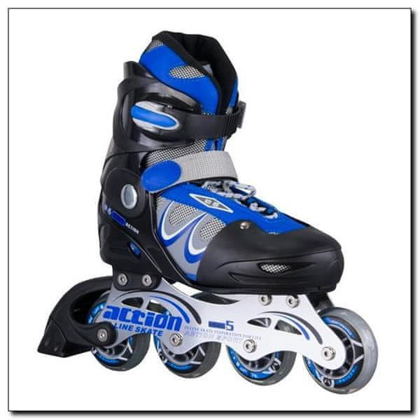 PW-130C so rolerji, namenjeni najmlajšim ljubiteljem drsanja. Izdelek je kombinacija zanimivega dizajna in visoke kakovosti izdelave. Roler je opremljen s posebnim aluminijastim okvirjem in ležaji ABEC5. Lahek in trpežen čevelj s sistemom trakov (velcro, dvodelna zaponka) zagotavlja maksimalno varnost. S preprostim sistemom prilagajanja lahko enostavno in hitro prilagodite velikost nogi uporabnika. Roler je opremljen s posebnim aluminijastim okvirjem in ležaji ABEC5. Model je na voljo v treh barvnih različicah. Tehnični podatki Ogrodje rolerjev: aluminij Ležaji: ABEC 5 Kolesa: 64 mm/ 72 mm/ 76 mm* PU škorenj: polmehak Zapenjanje: dvodelna zaponka Zavezovanje s trakom Velcro Rolerji opremljeni z zavoro Barva: roza, modra, rdeča Velikosti: Roza: S(32–35) M(36–39) Modra: S(32–35) M(36–39) L(40–43) Rdeča: S(32–35) M(36–39) L(40–43) Opombe Ni namenjeno komercialni uporabi Certifikati, standardi: CE Garancija 24 mesecev