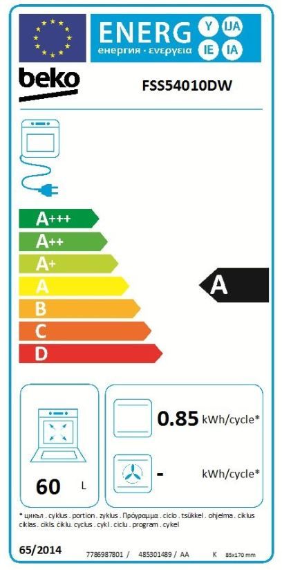 | Indeks energijske učinkovitosti pečice (EEI) | 106 |