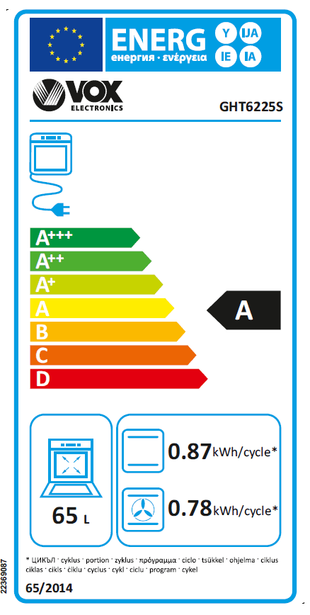 | Poraba električne energije – standardna | 0,87 kWh/cikel |