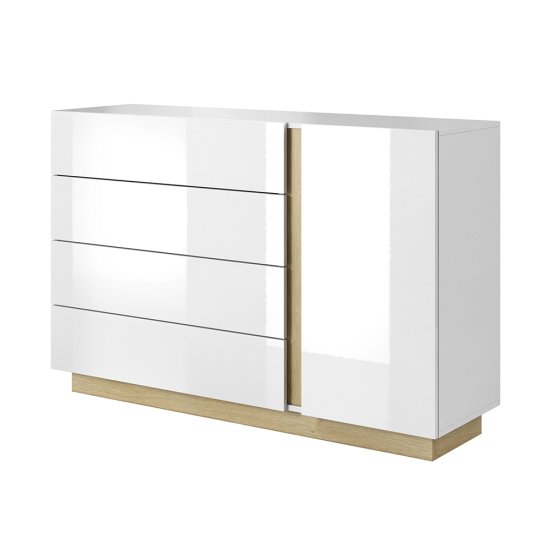 KONDELA Enovratna komoda s predali City D4S - bela / grandson hrast / beli sijaj