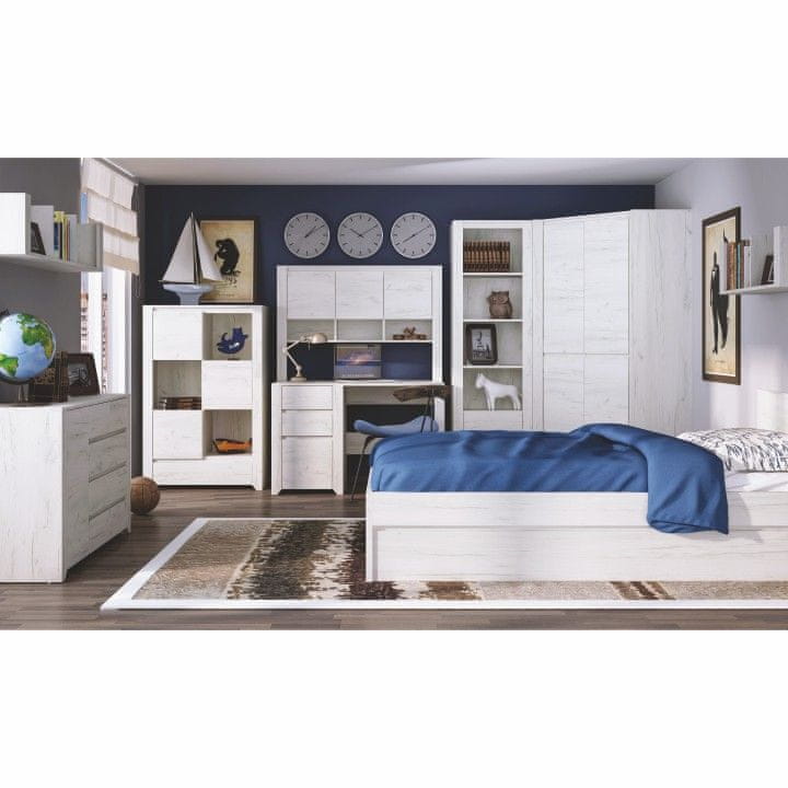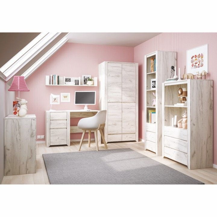 Komoda ANGEL TIP 43 5S je komoda s petimi predali, ki jo lahko kombinirate z ostalimi elementi iz modelne serije Angel. Debelina materiala notranje police je 1,6 cm. Sistem Angel je sektorski set primeren za otroške in študentske sobe. Material za izdelavo je laminiran DTD v barvi bela/craft. Celoten opis