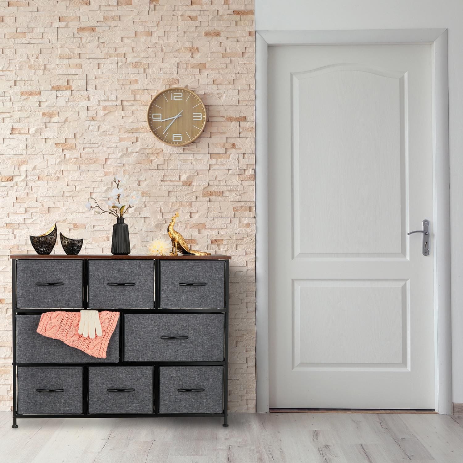 Elegantna vintage komoda izboljša prostor za shranjevanje v spalnici s stilom in funkcionalnostjo. Ta vsestranska komoda ima 8 prostornih predalov, popolnih za organiziranje oblačil, knjig ali dodatkov.